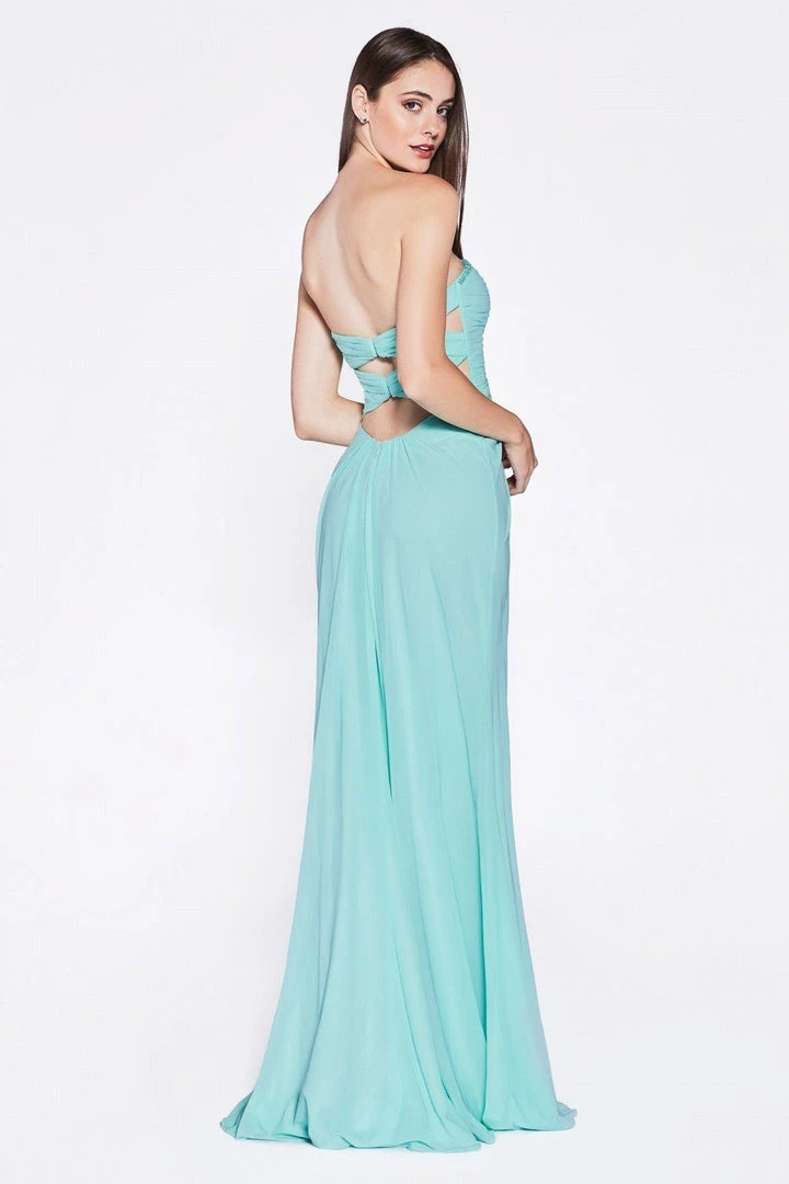 Dazzle the room in this long strapless sweetheart dress by Cinderella Divine 663. Shimmery beads detail the strapless sweetheart neckline. Sheered deep pleated bodice adds the glamor to this beautiful floor length evening dress.