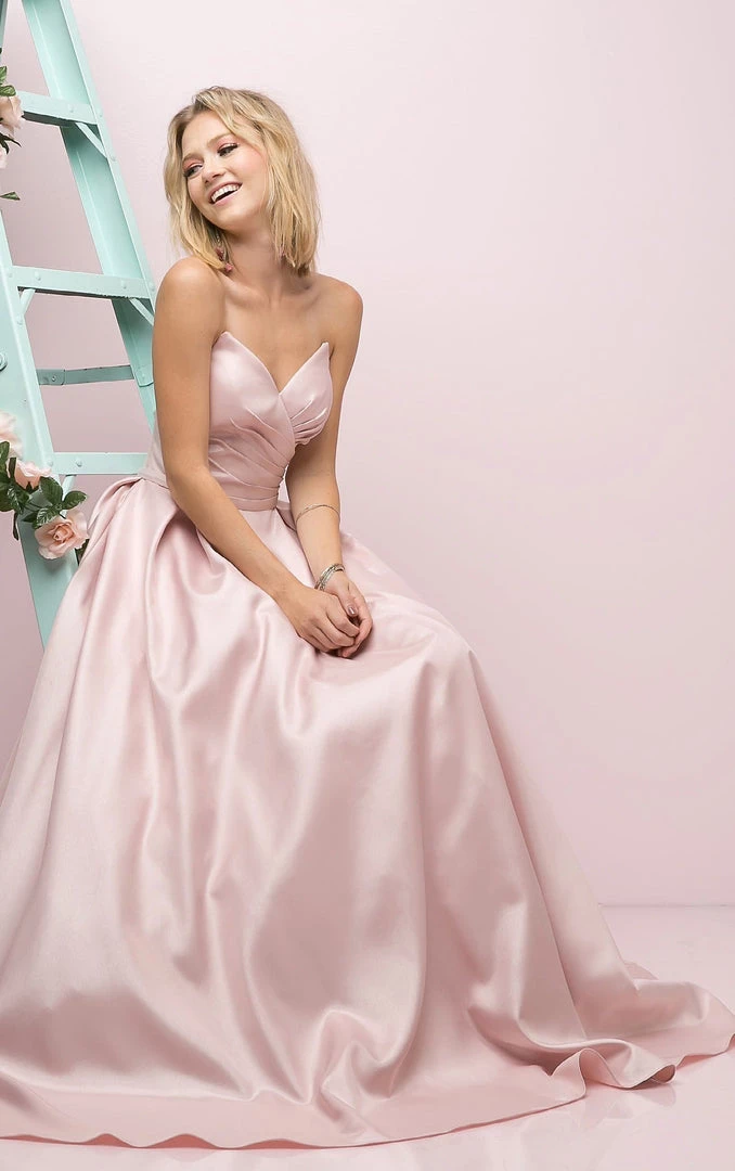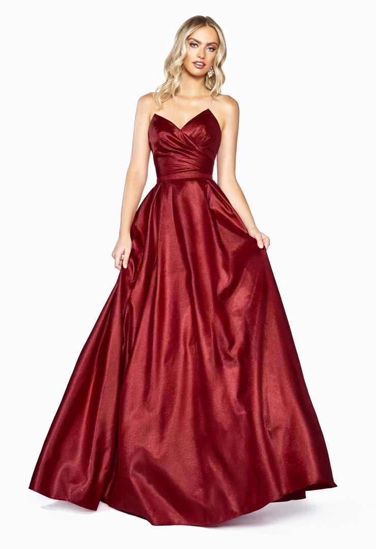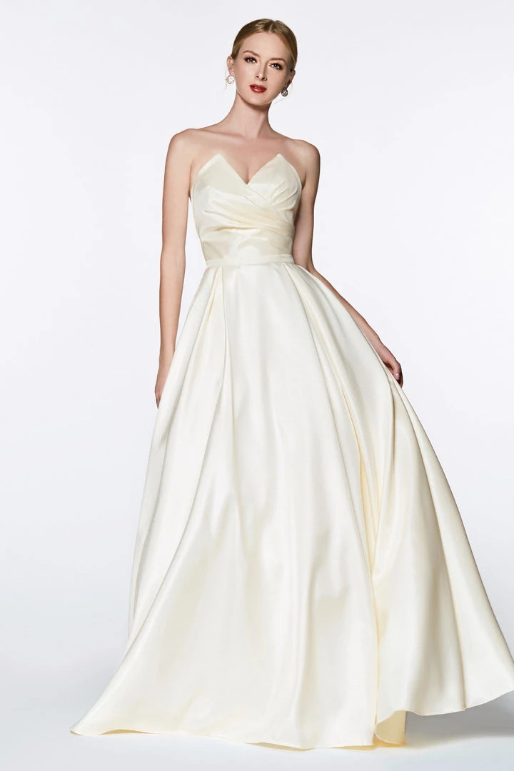 Be a trendsetter in this long strapless dress with pleated sweetheart bodice by Cinderella Divine UE008. We love this beautiful strapless ball gown with pointed sweetheart and pleated bodice!