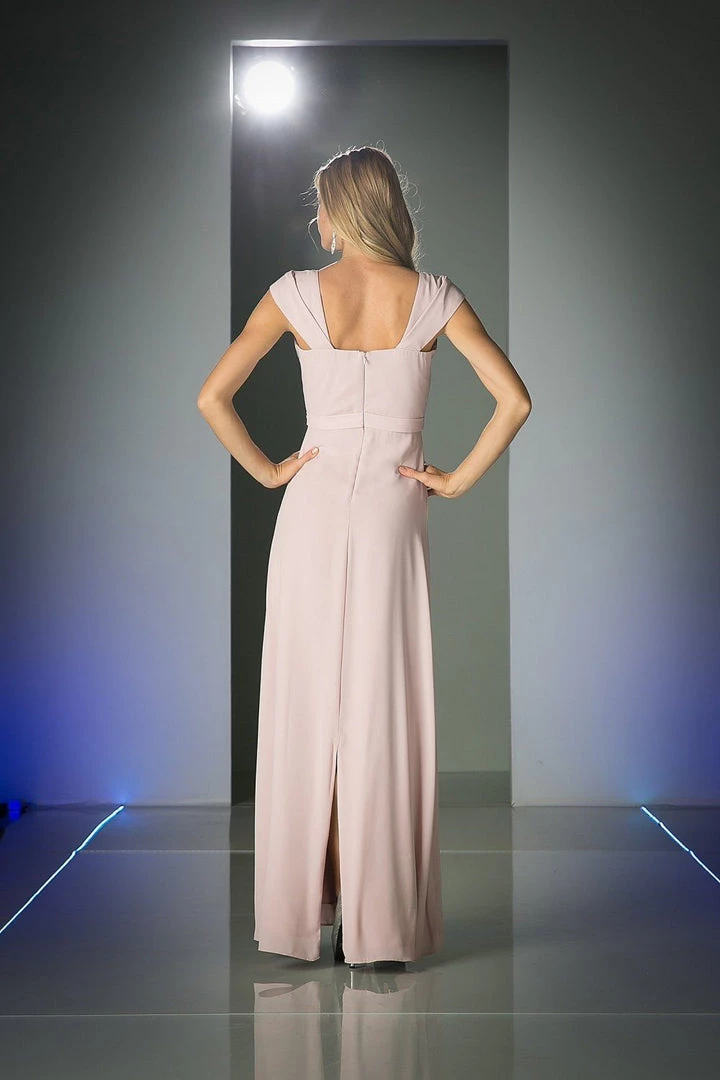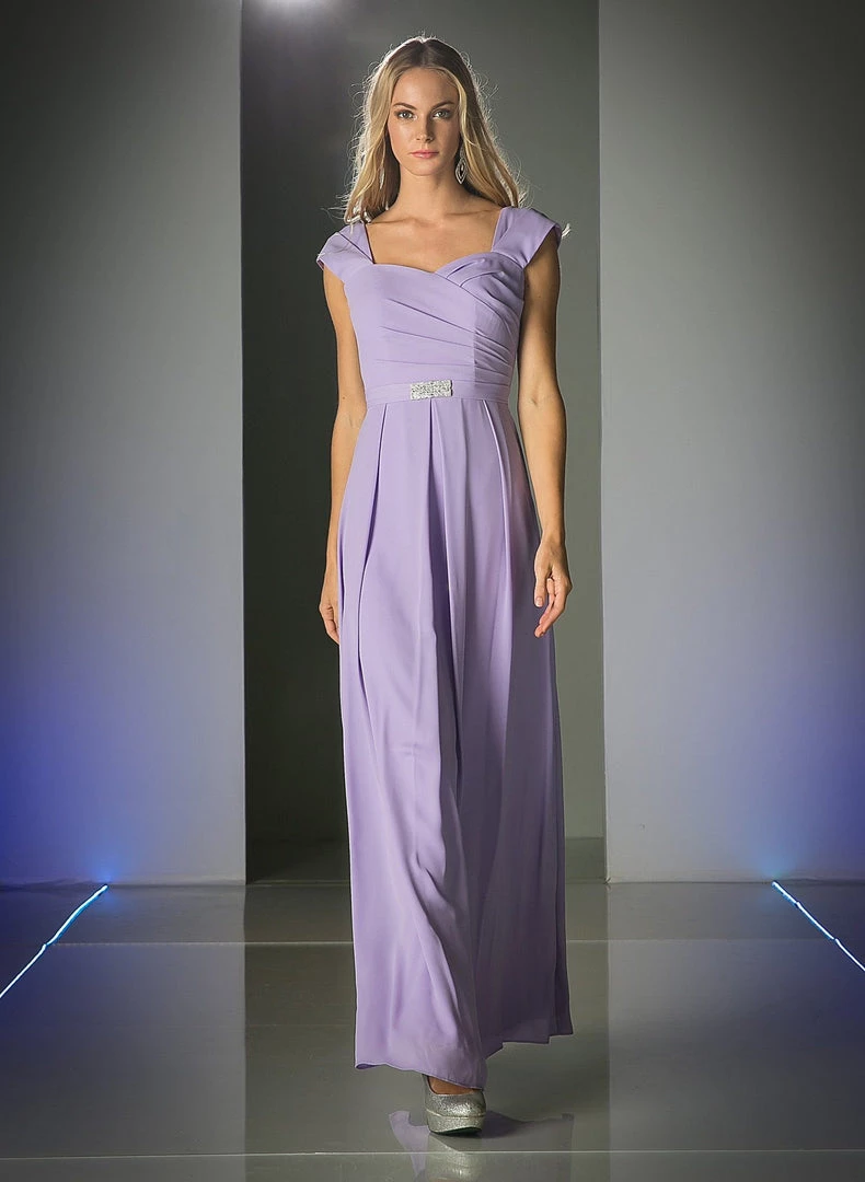 Look picture-perfect in this long cap sleeve dress with jeweled waist by Cinderella Divine 3948. Cap sleeves evening dress features princess sweetheart neckline and shirred bodice. Sparkling jewels detail the empire waist for the timeless look.