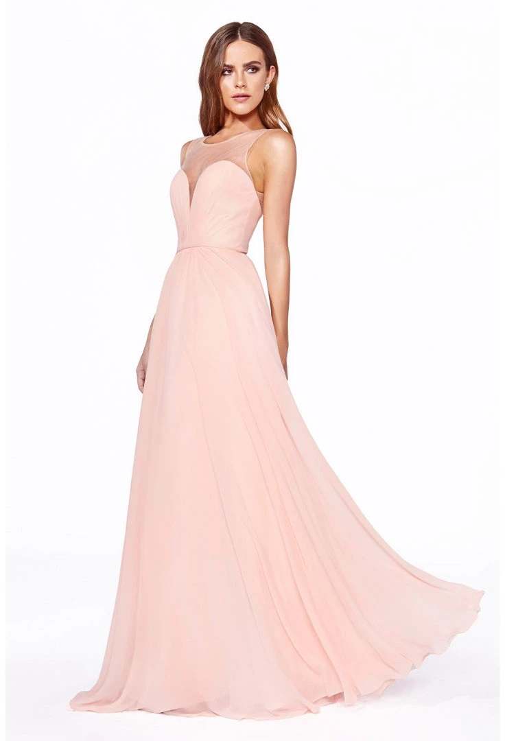 You’ll love twirling around in this long A-line chiffon dress with illusion sweetheart neckline by Cinderella Divine CJ251.