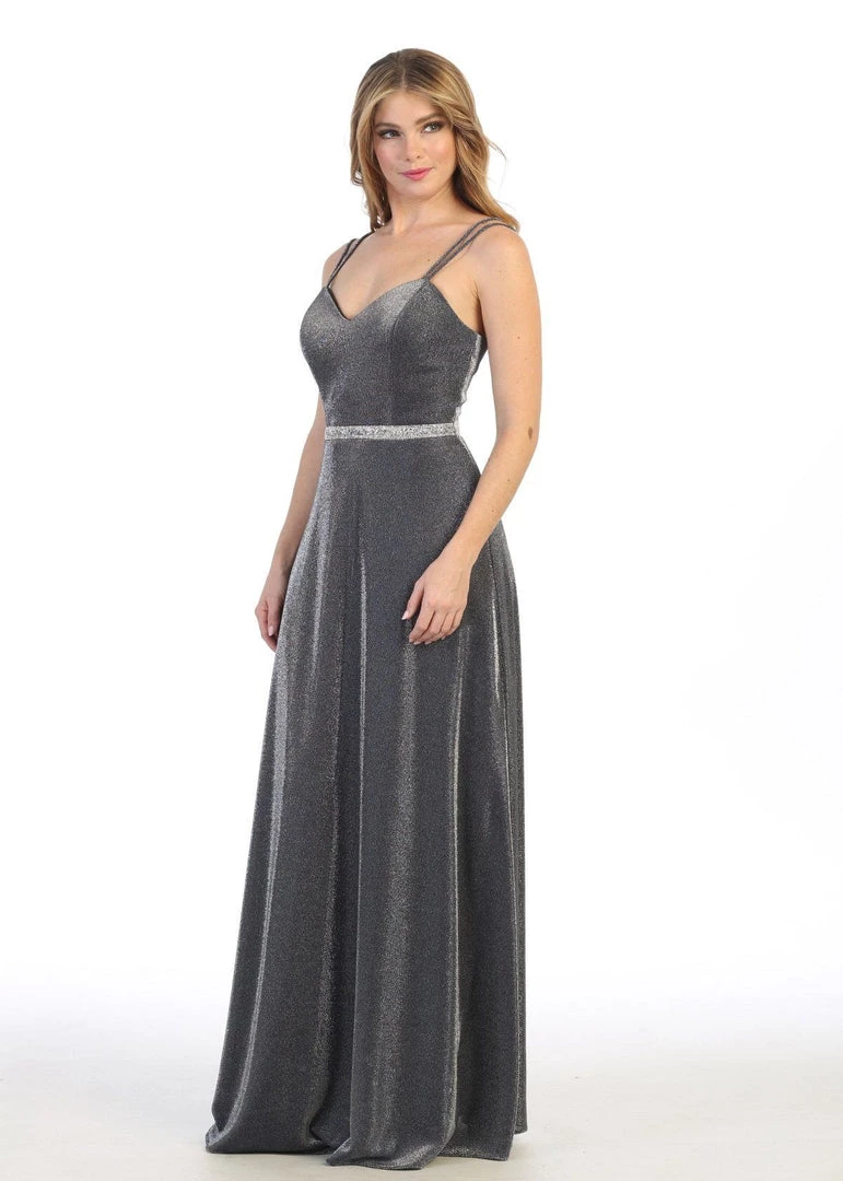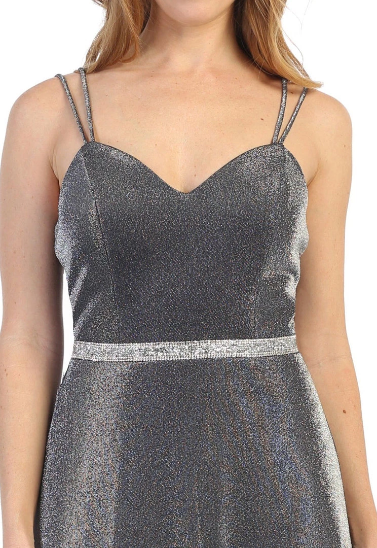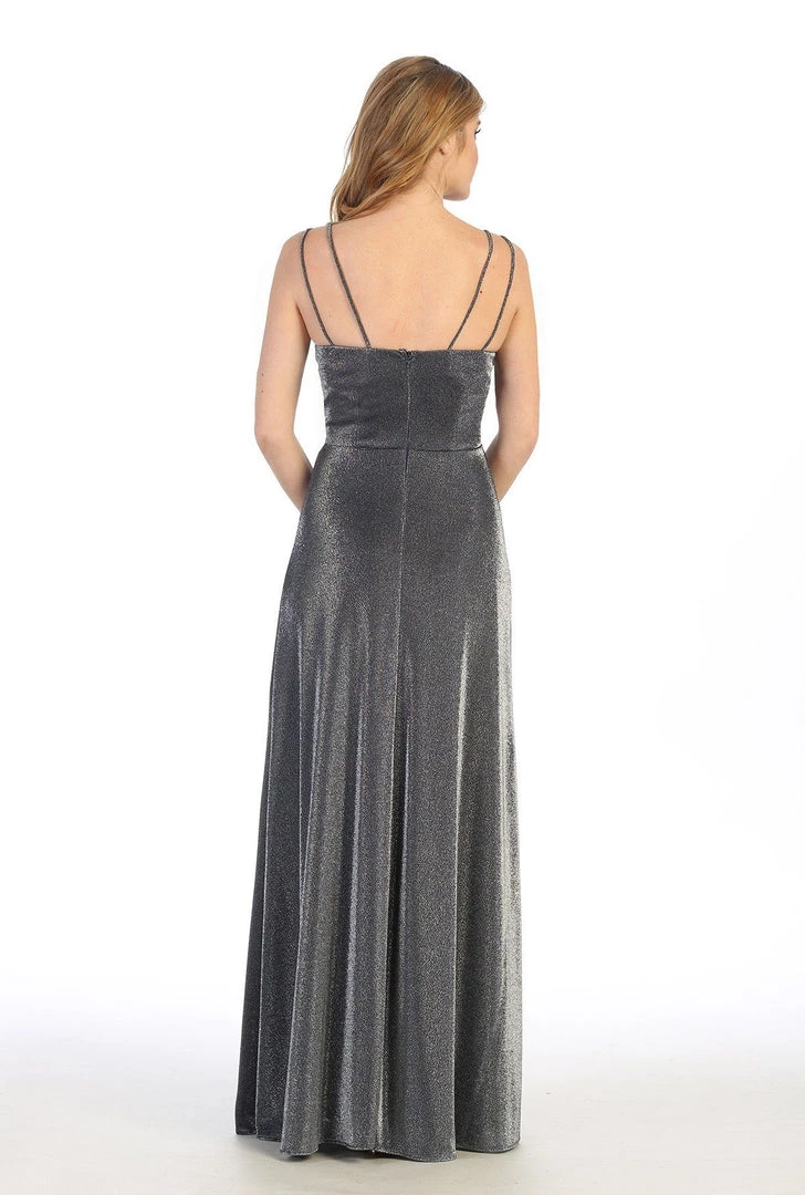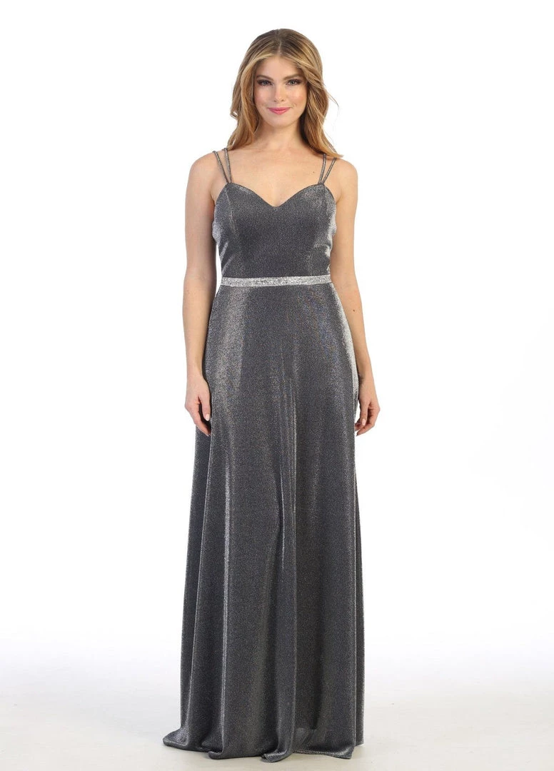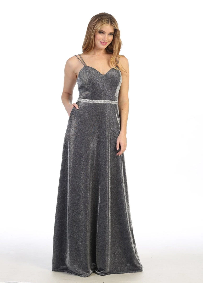 You’ll love twirling around in this long sweetheart metallic glitter dress with A-line skirt by Celavie 6502L. Long sleeveless metallic glitter dress with sweetheart neckline, double spaghetti straps, rhinestone beaded waistband, open back, side pockets, floor length A-line skirt, and a zipper closure. Affordably priced at $149, this evening gown is perfect for any formal event and will keep you on budget!