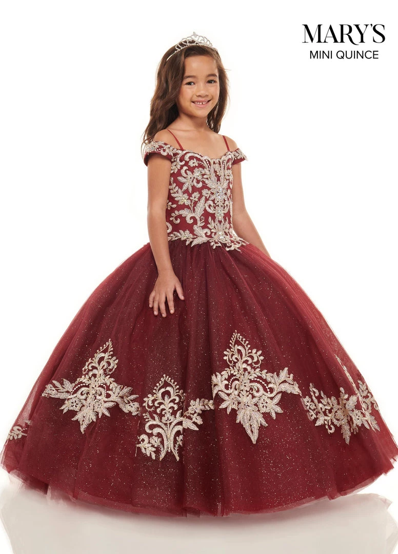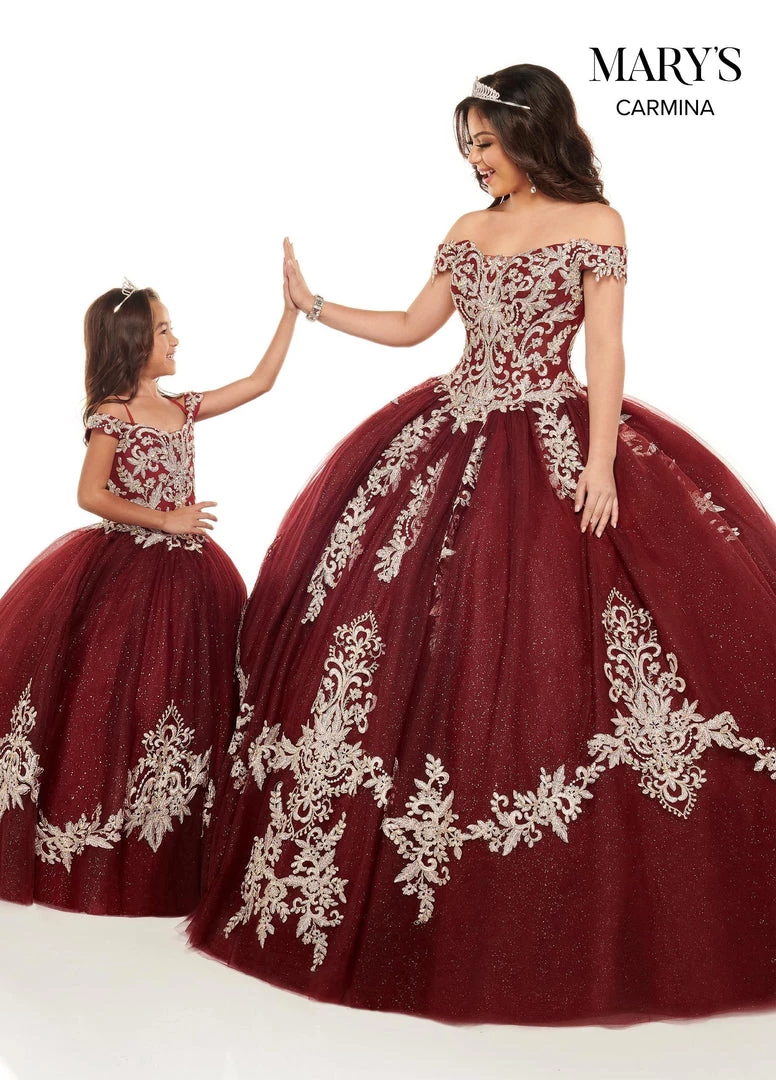 - This dress is available in matching adult sizes and is sold separately for $749! To order a matching women’s dress, please visit: https://www.abcfashion.net/products/applique-off-shoulder-quinceanera-dress-by-marys-bridal-mq1071