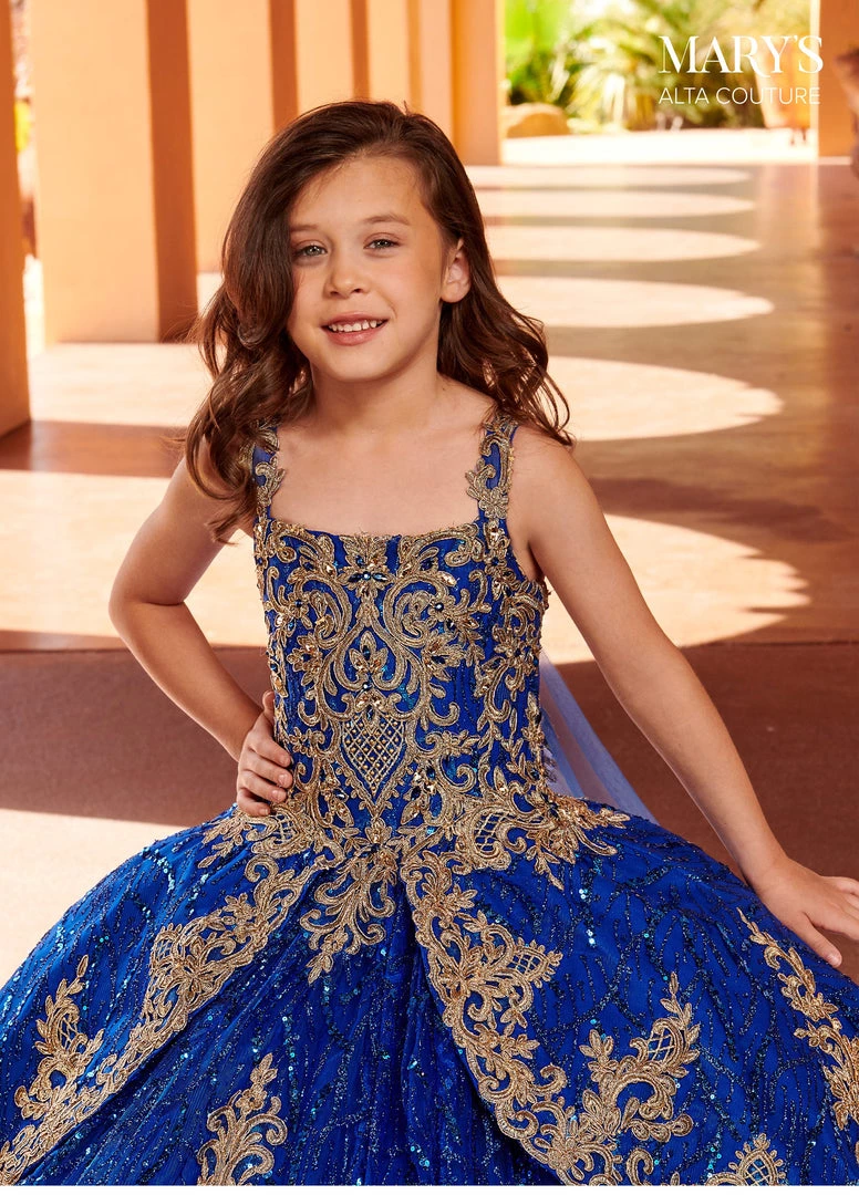 Your sweet girl will be picture ready in this sleeveless with A-line skirt by Mary’s Bridal Mini Quince MQ4033. This dress features a glitter Tulle mini quince ball gown with a square neck line, tiered skirt, gold applique, beading, back with keyhole and detachable streamers, lace-up closure, and sweep train. This dress matches quinceanera style MQ1106.