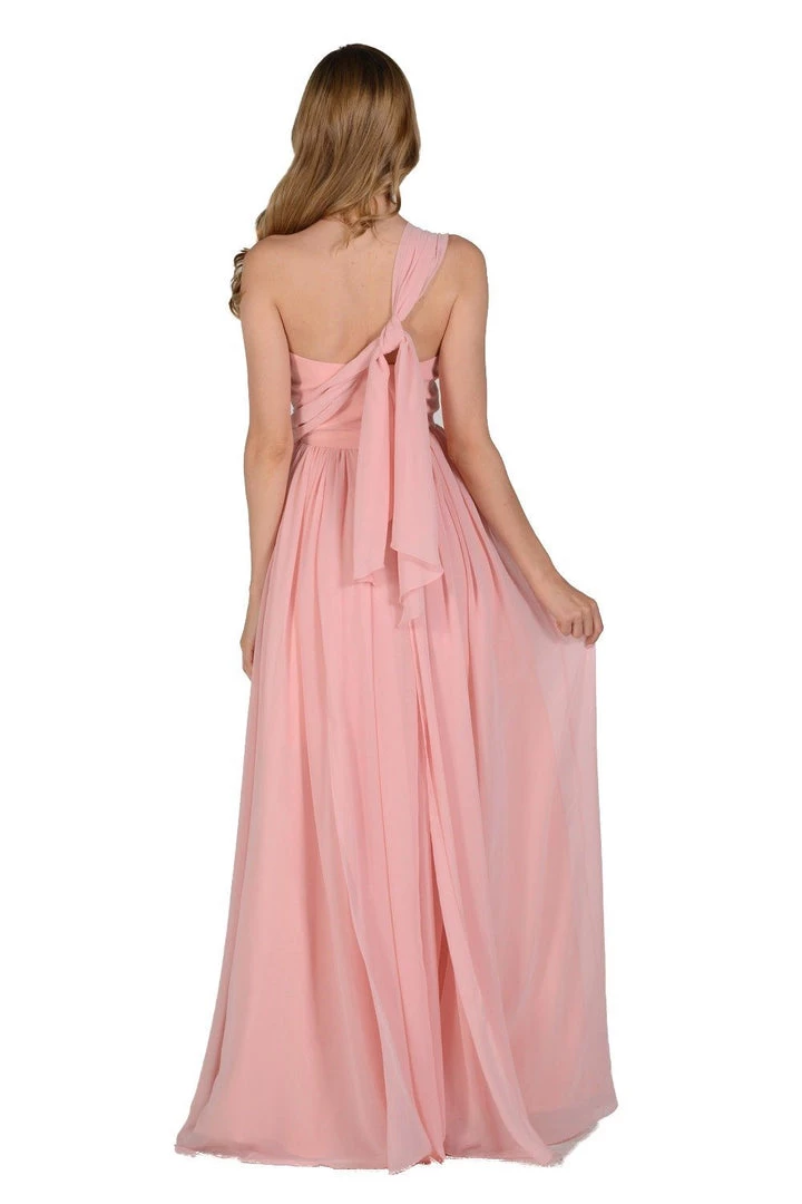 This versatile long mint green convertible chiffon dress by Poly USA Style Number 7156 is a must-have for your wardrobe. This convertible dress features a beautiful pleated bodice, elegant floor-length skirt, and a side zipper closure. This gown has long panels that come from the waistline and can be artfully wrapped and tied over the bodice to create more than 10 different elegant looks. Affordably priced under $150, this versatile long evening gown is perfect for bridesmaids, formal parties, and for prom dances!