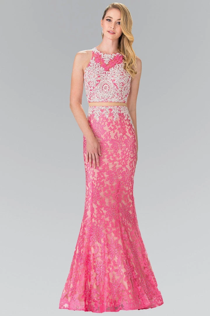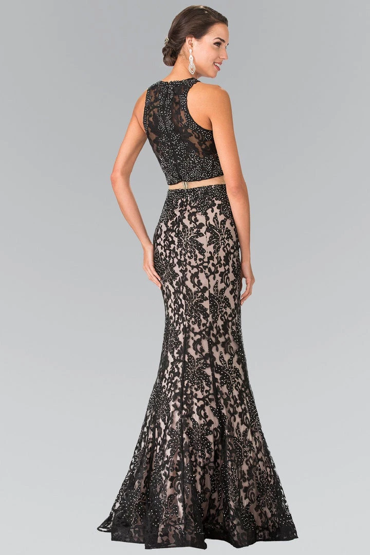 Think of how amazing you’ll look in this mock two piece high neck long lace dress by Elizabeth K.