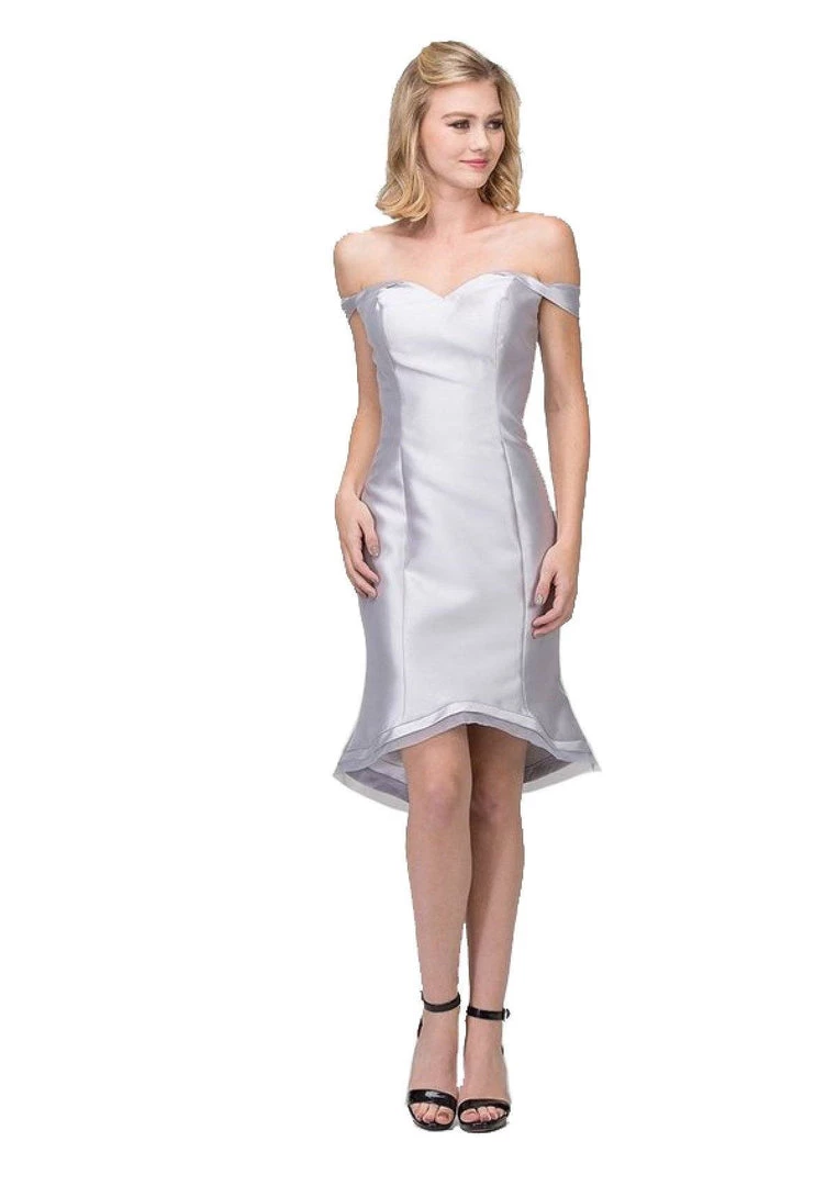 Turn heads in this off the shoulder cocktail dress with high low skirt by Star Box 172585. This beautiful short dress features an off shoulder bodice with a sweetheart neckline, flirty open back, short A-line skirt with a hi-lo hemline, and a zipper closure. Affordably priced at $129, this short party dress is perfect for any formal event and will keep you on budget!