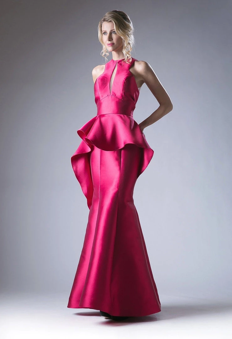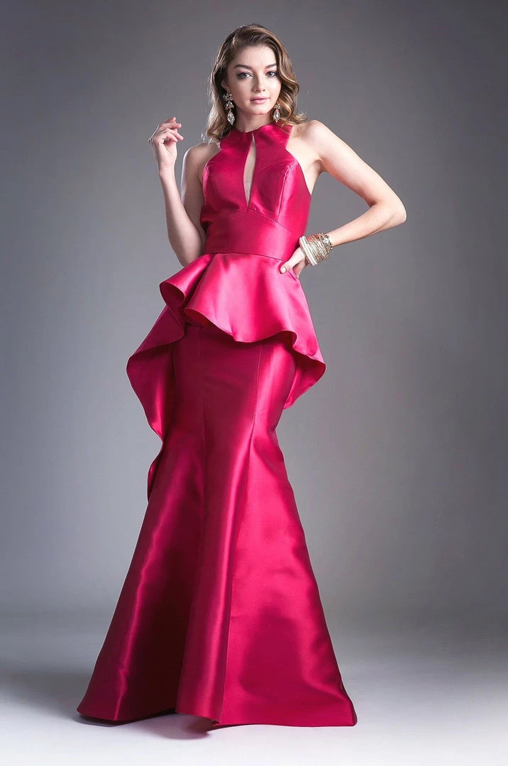Turn heads in this long sleeveless peplum mermaid dress by Cinderella Divine ML1692.