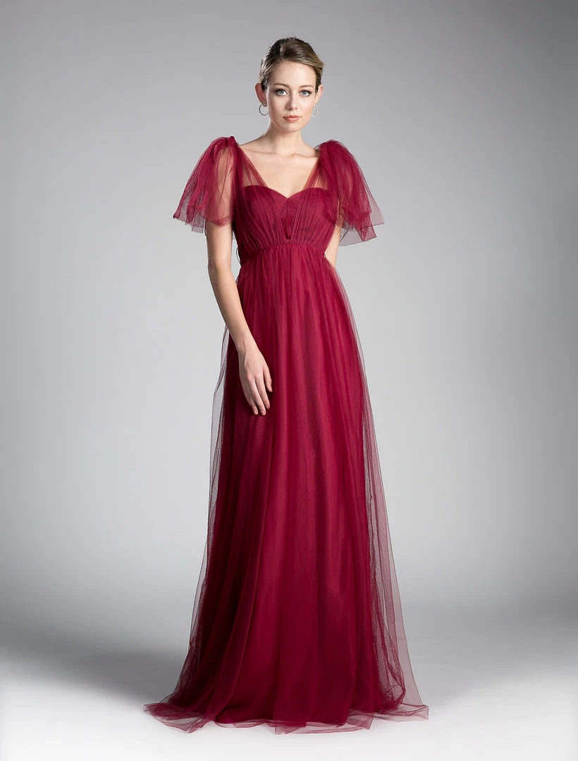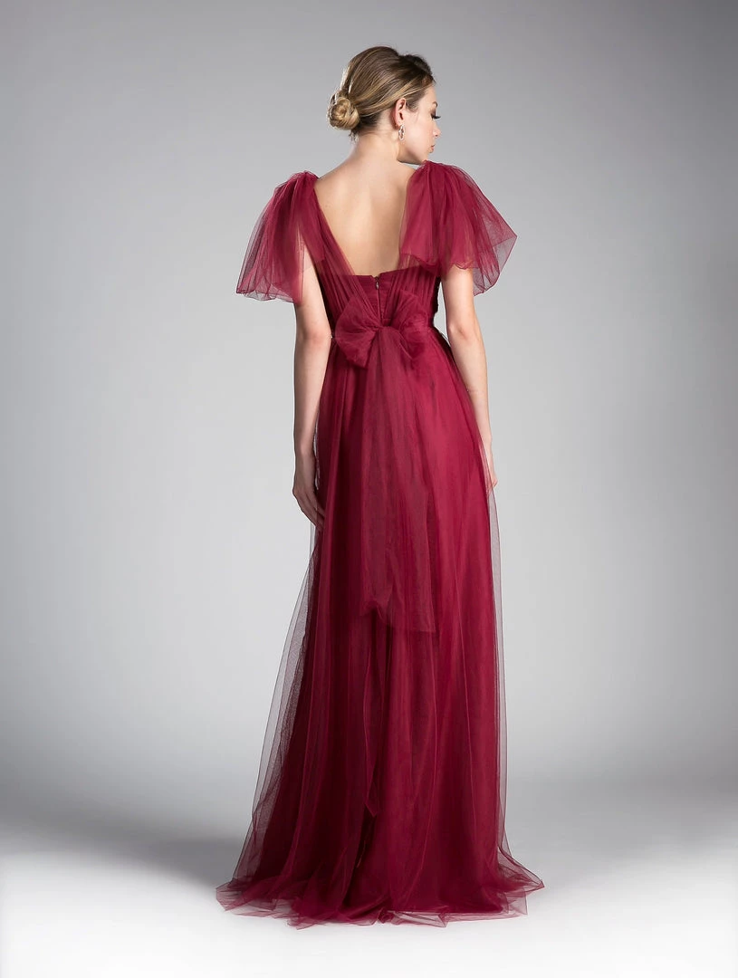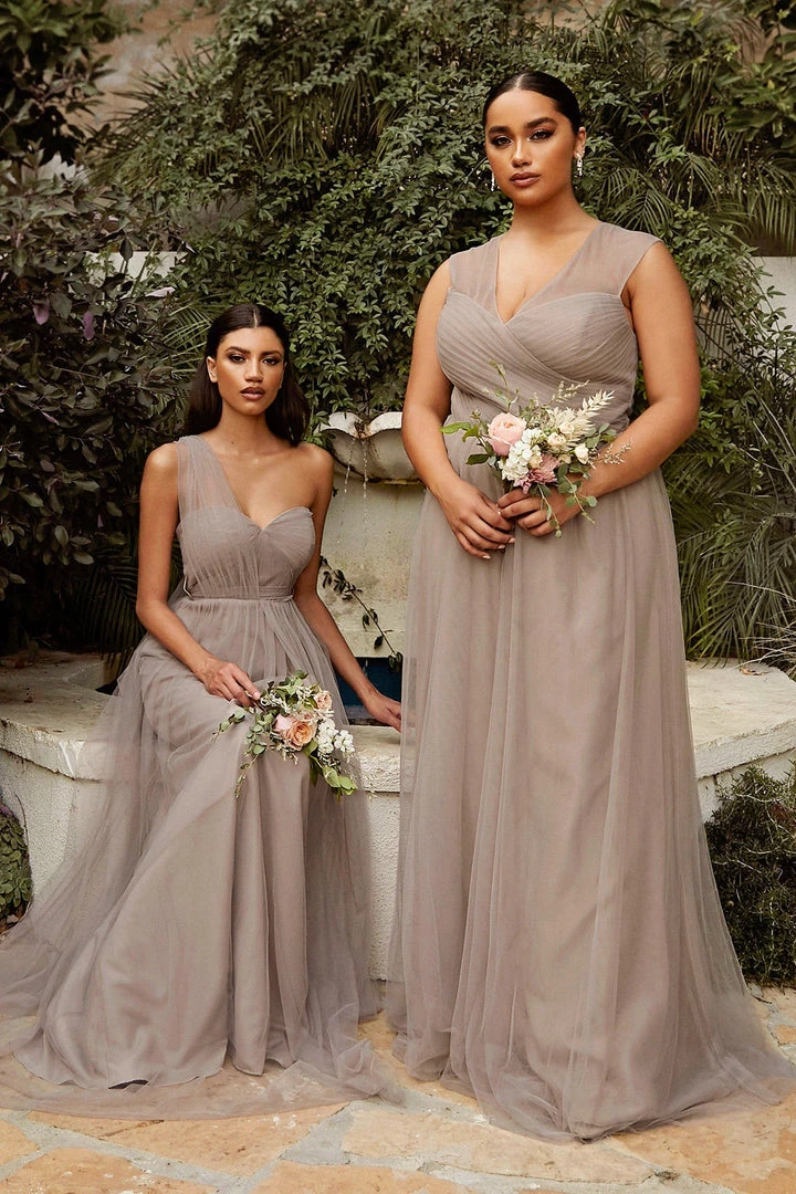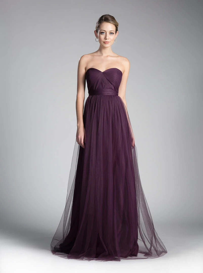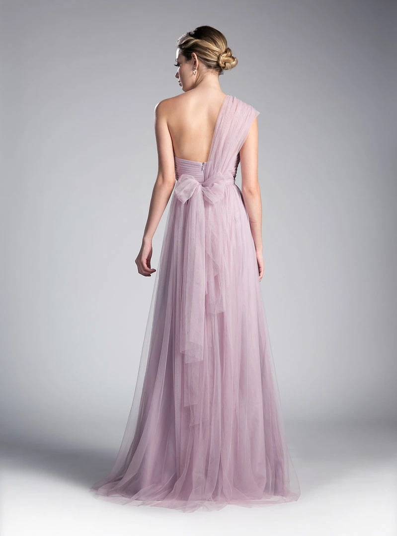 Create lasting memories in this pleated long convertible tulle dress by Cinderella Divine ET322. This gown has long panels that come from the waistline and can be artfully wrapped and tied over the bodice to create several different looks.