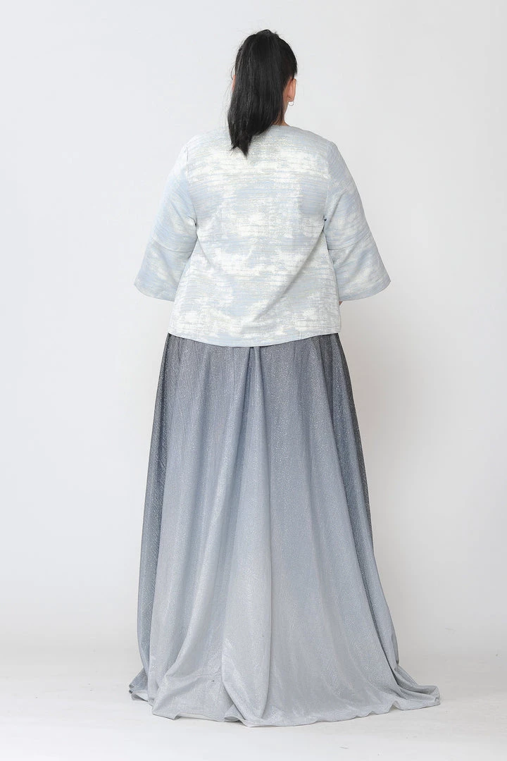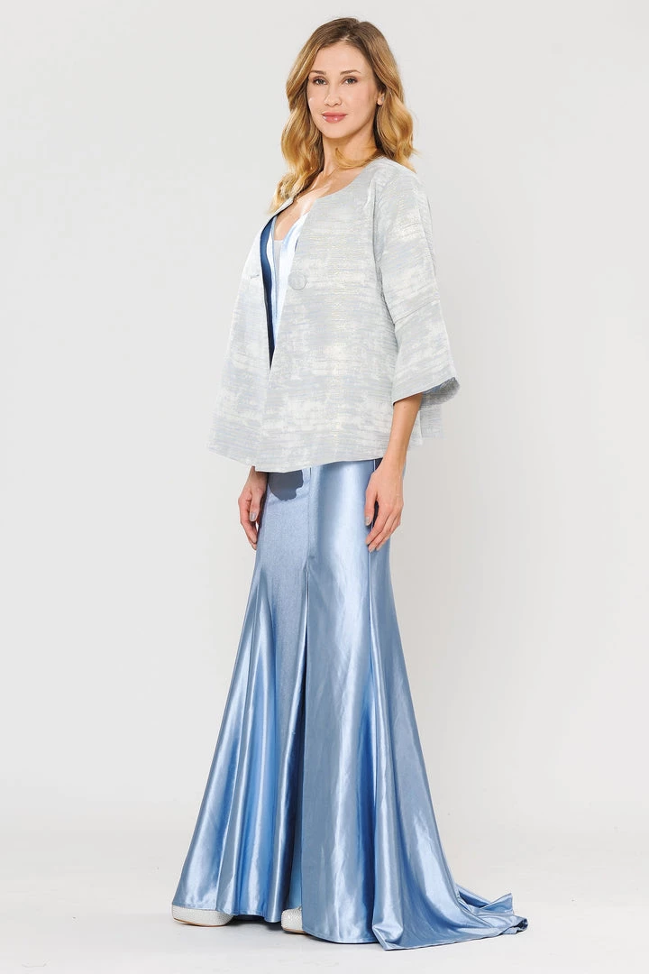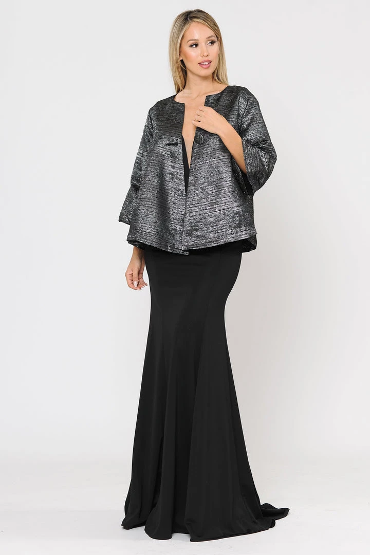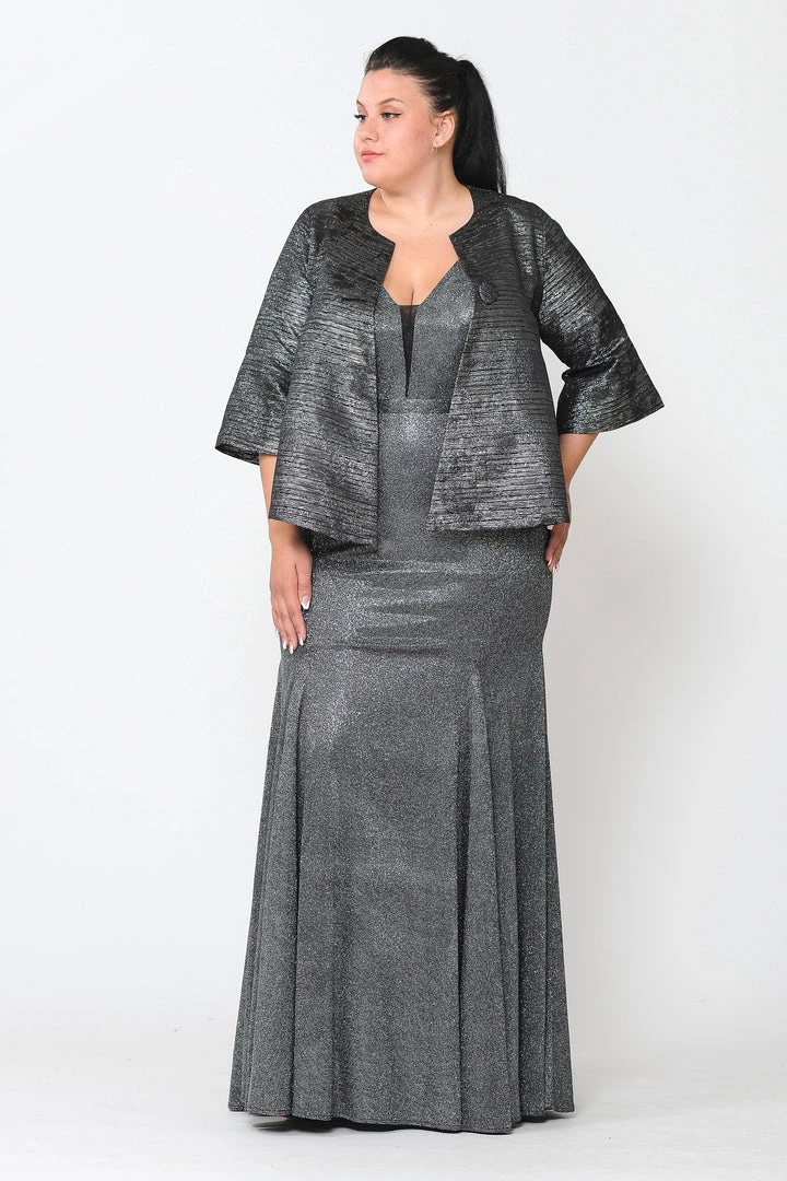 Add this versatile two-tone metallic plus size formal jacket with single-button by Poly USA JK1922 in your wardrobe.