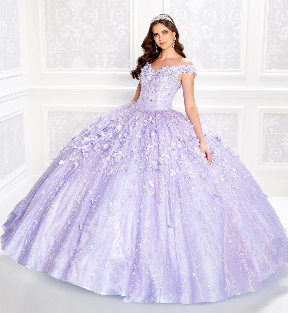 You’ll love twirling around in this 3D floral embroidered long off the shoulder dress with A-line skirt by Princesa by Ariana Vara PR22036NL. Made out of glitter tulle, this beautiful off shoulder ball gown features a beaded sweetheart bodice adorned with three-dimensional flowers, basque waist, lace-up corset back, three-dimensional flowers, stone accents throughout the dress, and a sweep train. Matching bolero jacket and detachable off the shoulder straps are included.