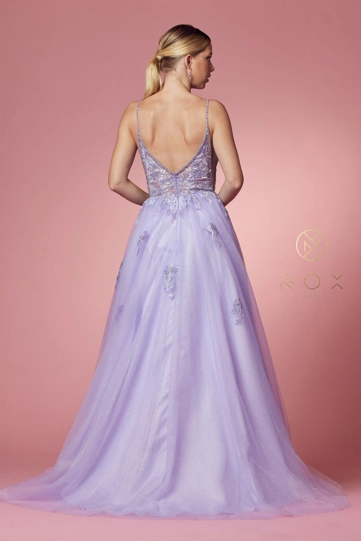 - Applique Sheer Sleeveless Gown by Nox Anabel T1012