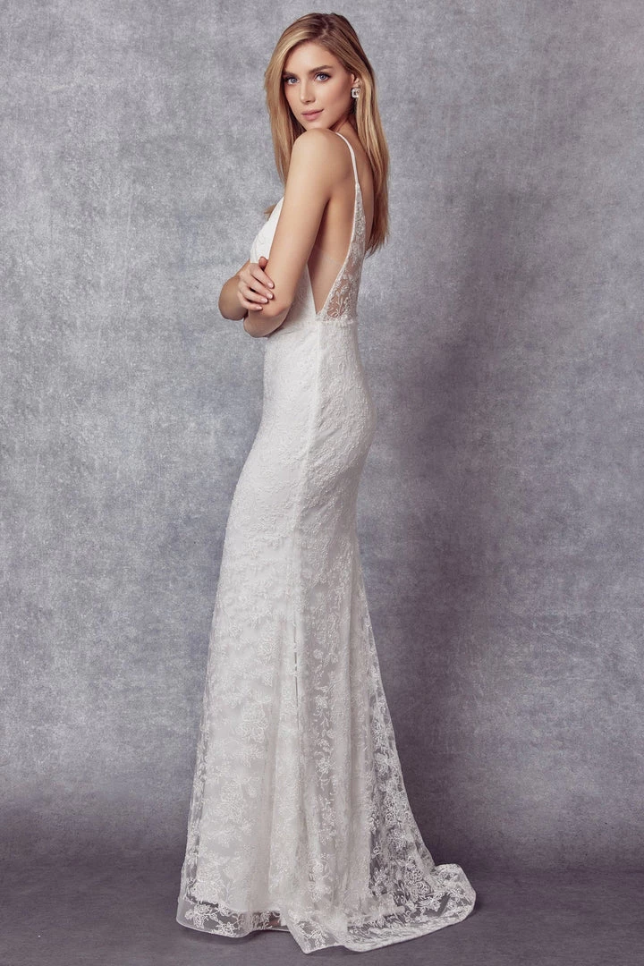 Prepare to steal the spotlight in this long sleeveless open back dress with mermaid skirt and sweep train by Juliet 272. This dress comes beautifully with an illusion v-neck and embroidered lace with handstitched stone accents with a zipper closure.
