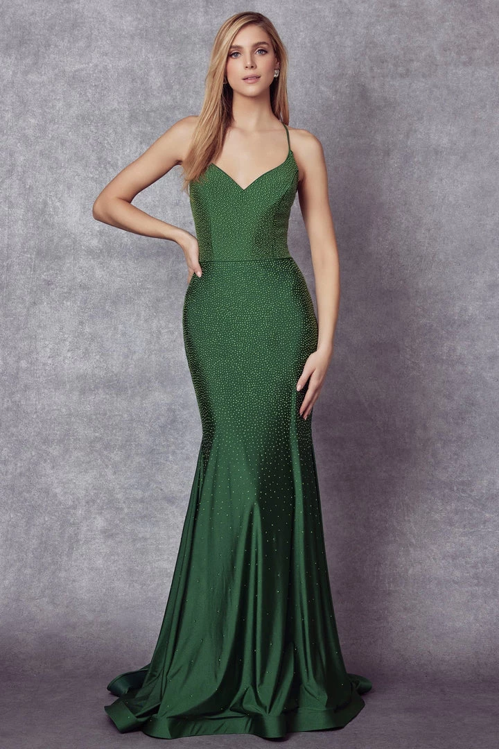 - Beaded Lace-Up Back Mermaid Gown by Juliet