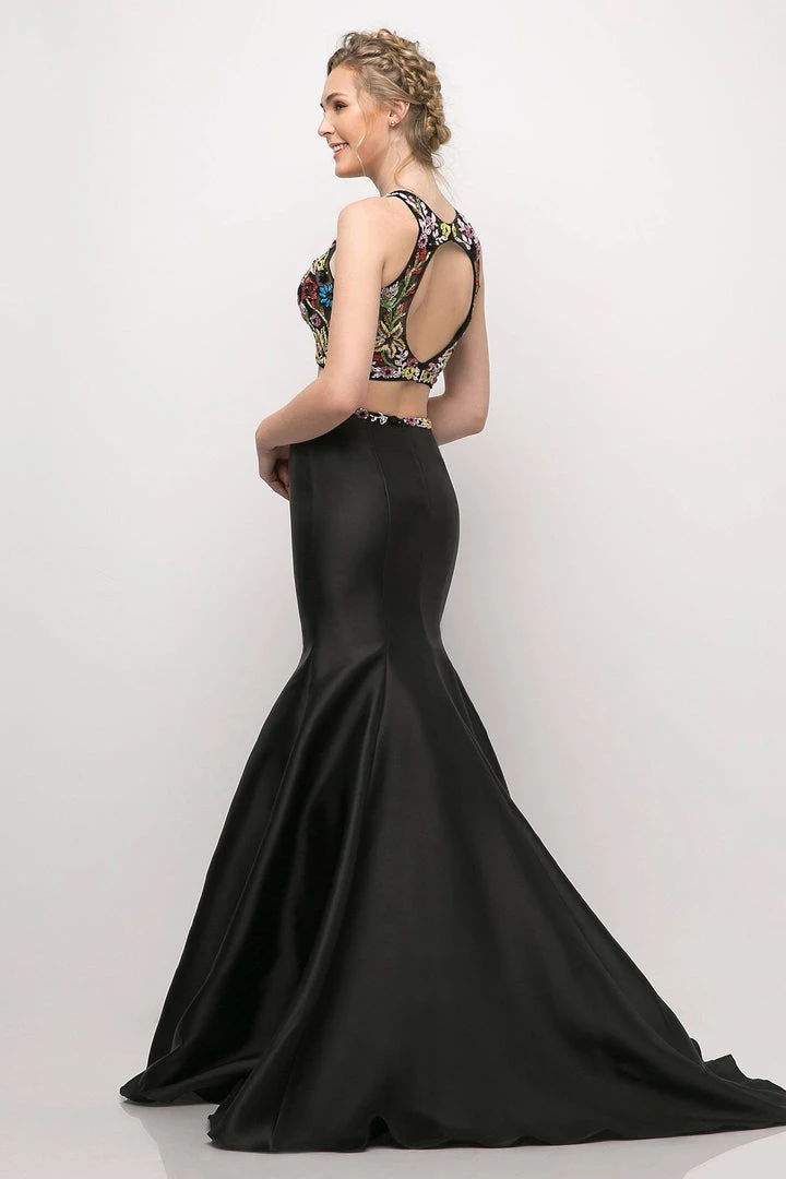 Dance the night away in this floral beaded 2 piece mikado mermaid gown by Cinderella Divine 84267.