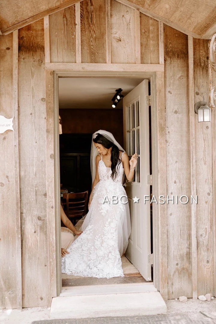 - Sleeveless see-through sweetheart bodice with spaghetti straps