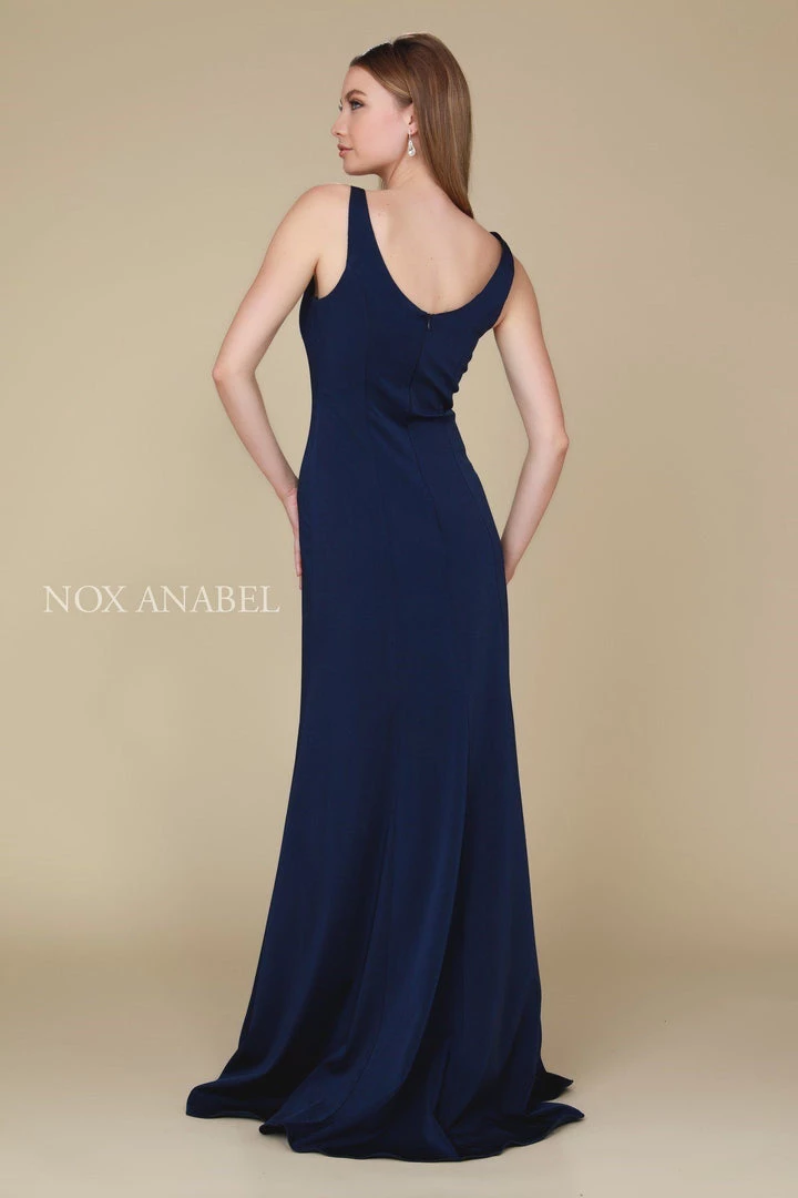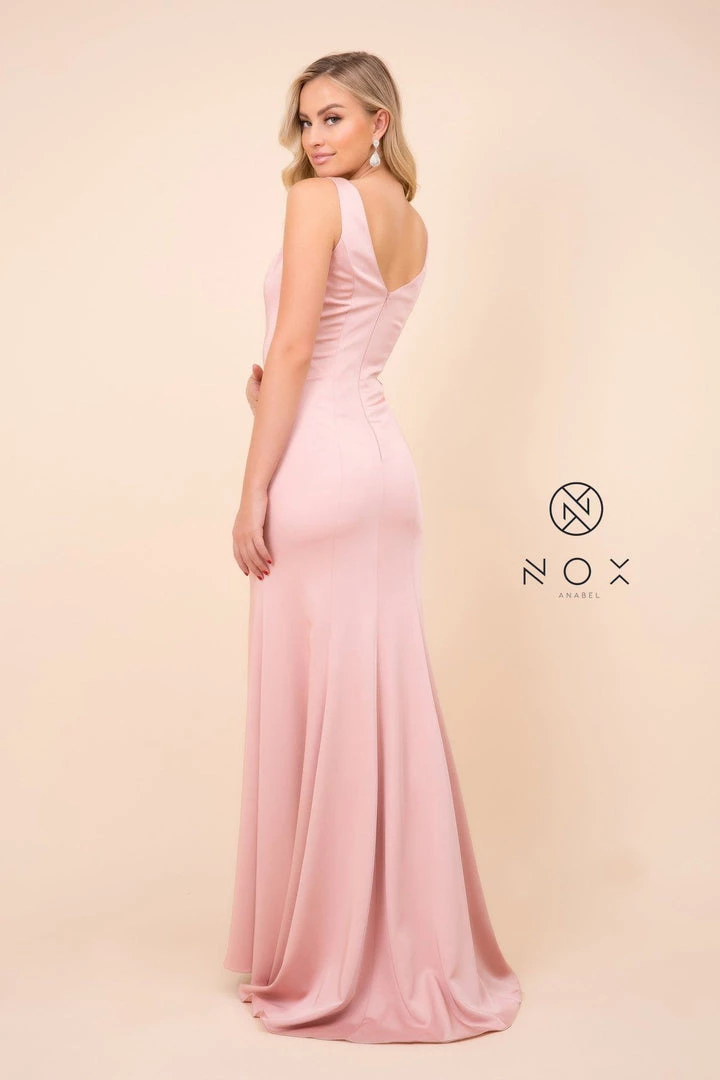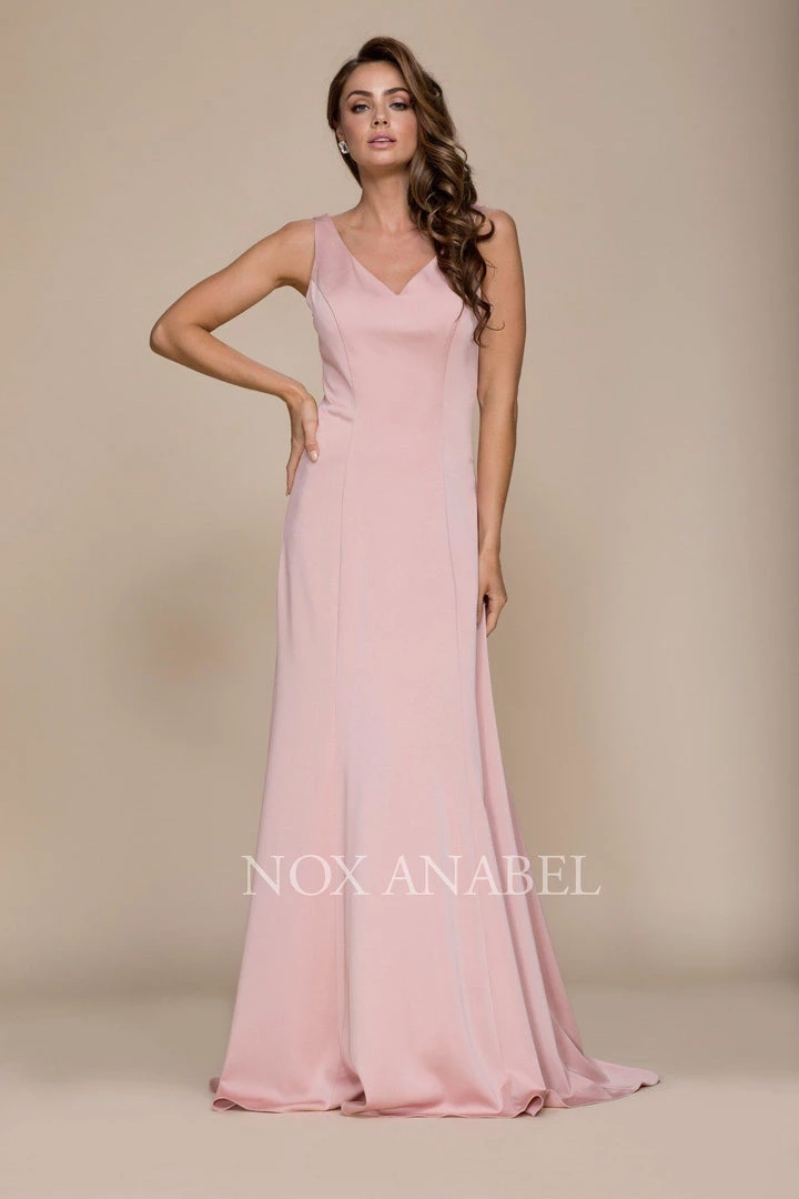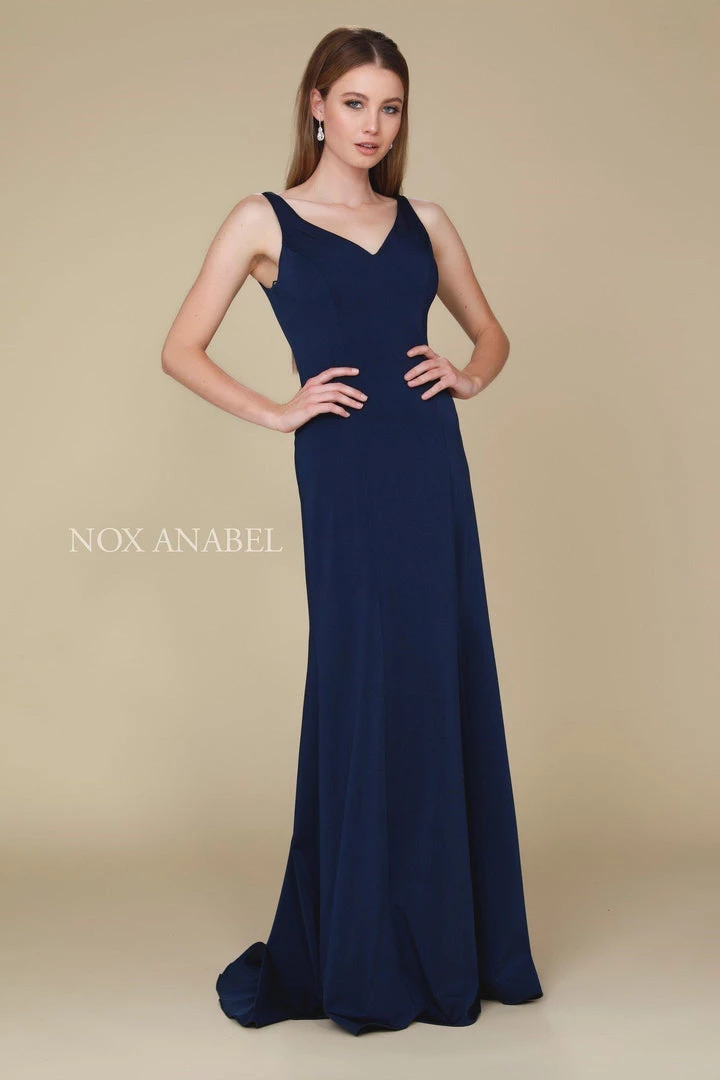 Be selfie ready in this V-neck princess-cut gown by Nox Anabel Q011. This evening dress features a stunning V-neck bodice, eye-catching open V-back, floor length fitted skirt with sweep train, and a zipper closure. Affordably priced under $150, this dress is perfect for any formal event and will keep you on budget!