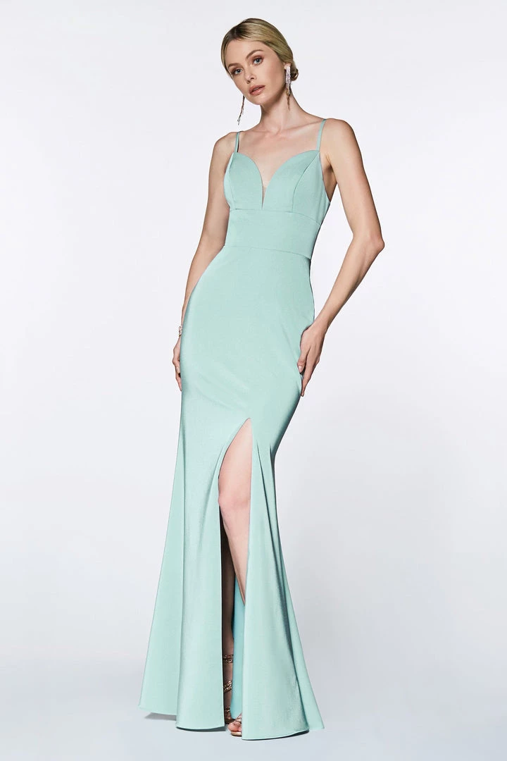 Dance the night away in thisĀ fitted long sweetheart dress with side slit by Cinderella Divine 7470.