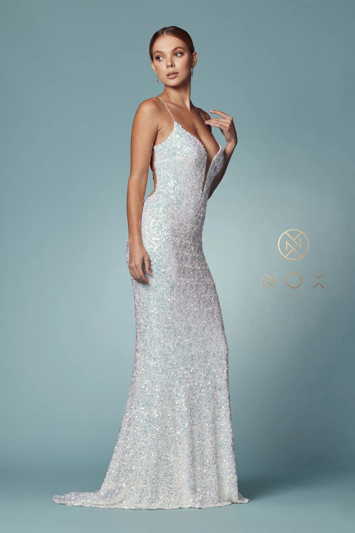 - Iridescent Sequin Lace-Up Back Gown by Nox Anabel R1034