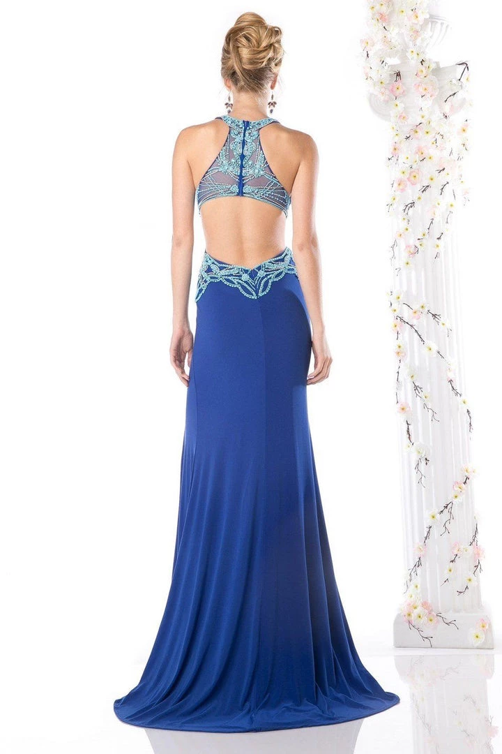 Look timeless in this fitted long halter dress with side leg slit by Cinderella Divine CK10.