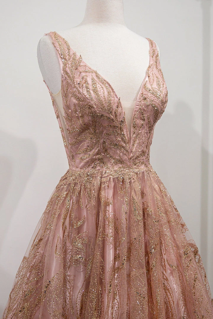 Light up the room in this glitter print long sleeveless V-neck dress with A-line skirt by Cinderella Divine J812. An elegant and sophisticated option for any formal occasion, this A-line gown features an illusion V-neckline and bodice that nips in to accentuate the waist before descending to a voluminous, gathered, floor-sweeping skirt. It boasts an allover beaded and embroidered leaf design.