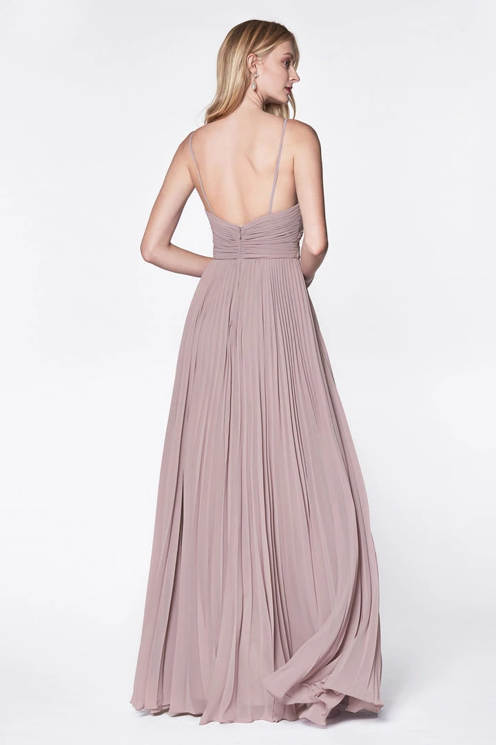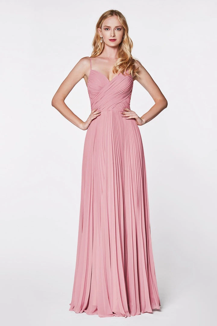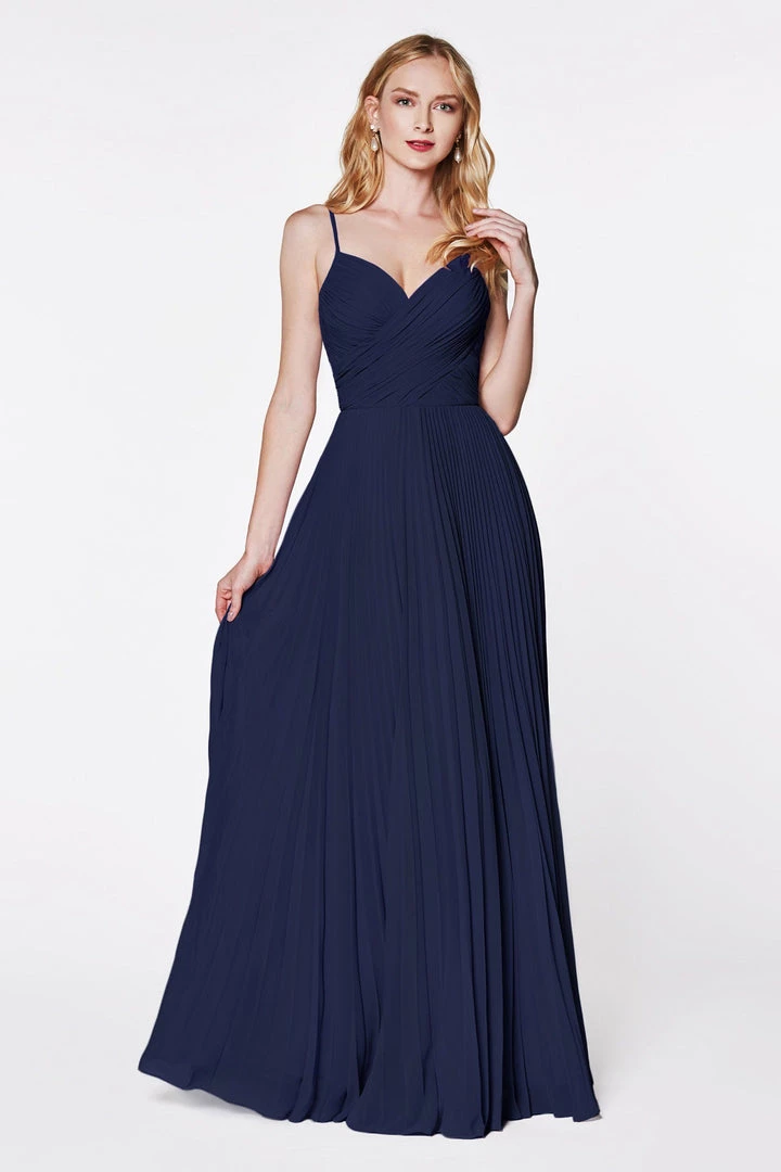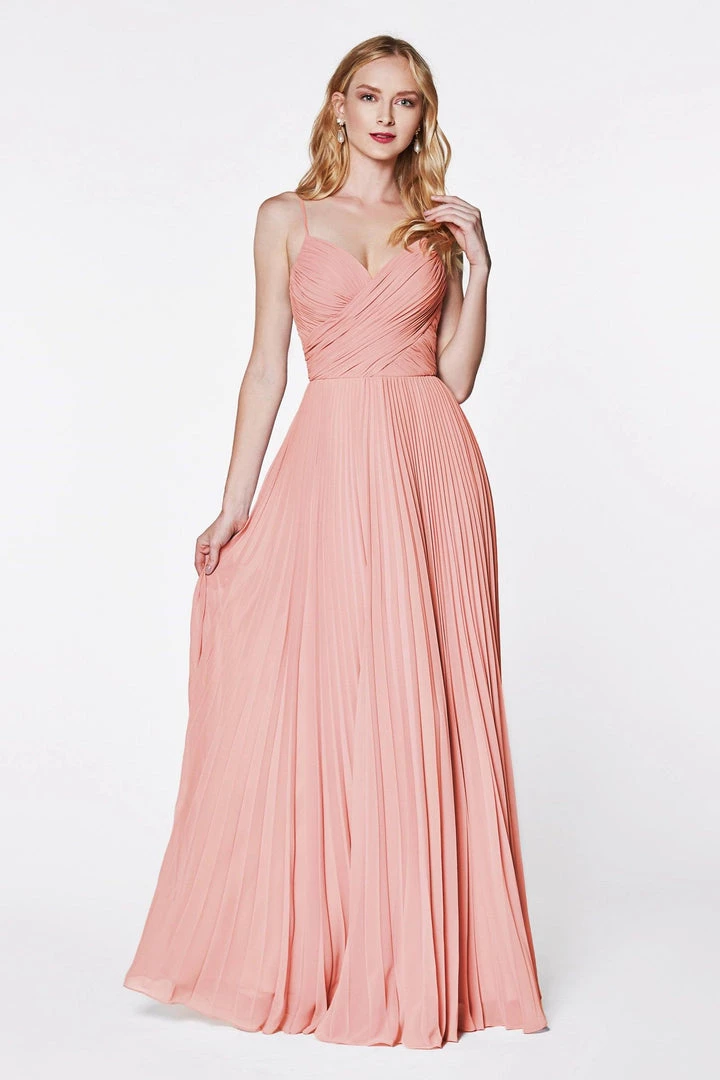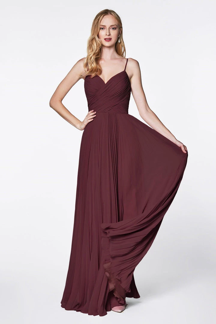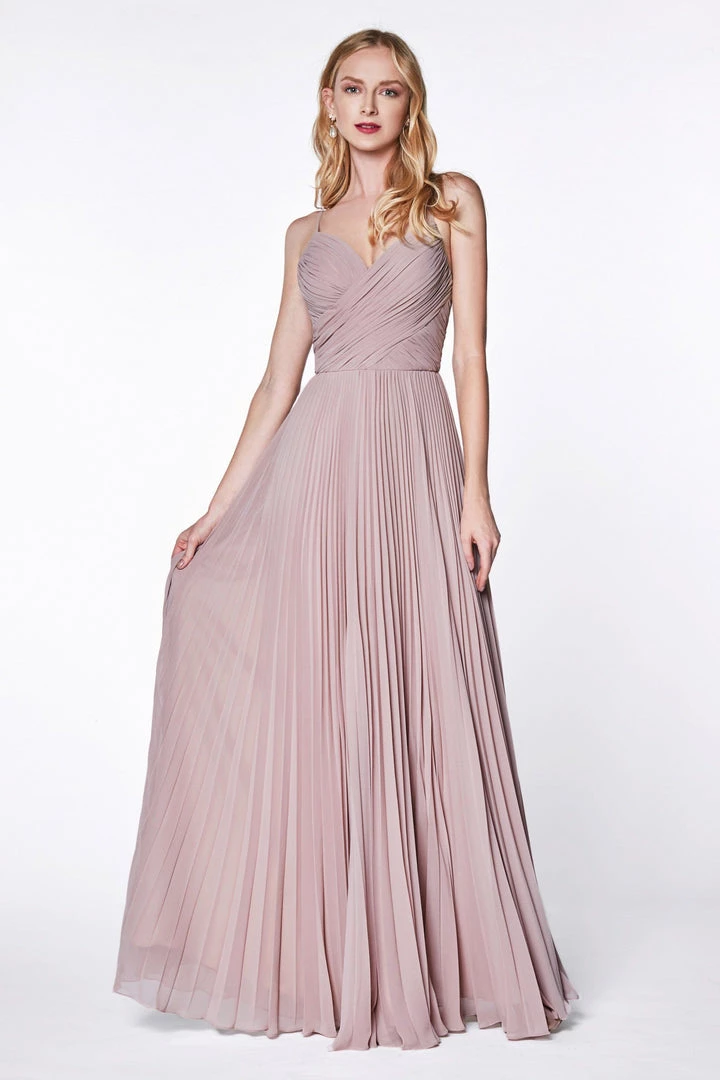 You’ll love twirling around in this long ruched sweetheart dress with pleated A-line skirt by Cinderella Divine 7471.
