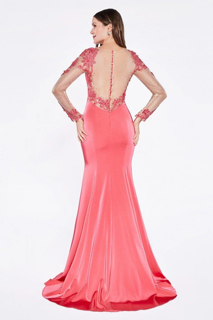 Dance the night away in this pink long sleeve mermaid dress by Cinderella Divine KD038.