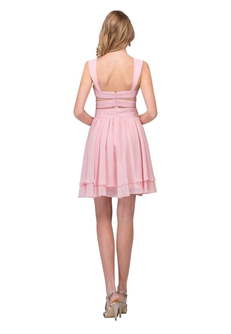 Look fetching in this sleeveless sweetheart cocktail dress with illusion panels by Star Box 6428. This beautiful short dress features a pleated sweetheart neckline, sheer panels, flirty open back, double tiered short A-line skirt, and a zipper closure. Affordably priced under $100, this short party dress is perfect for any formal event and will keep you on budget!