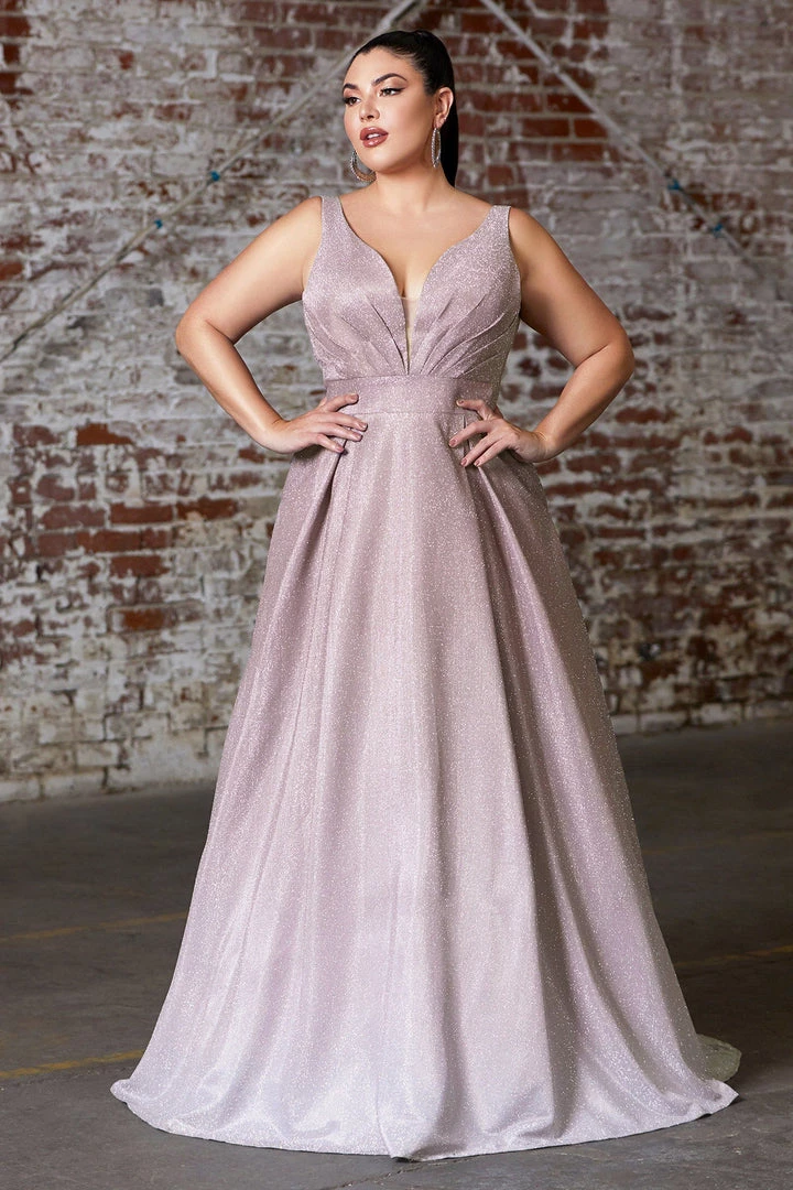 Look picture-perfect in this plus size long a-line metallic glitter ombre dress by Cinderella Divine 9174C (Curve Collection).