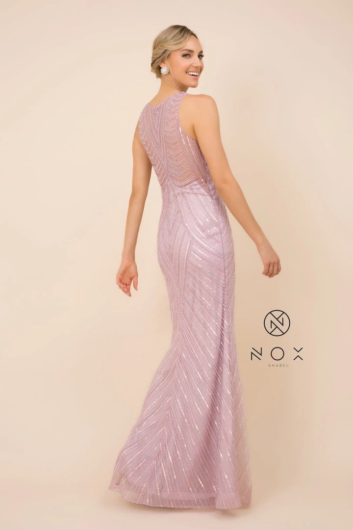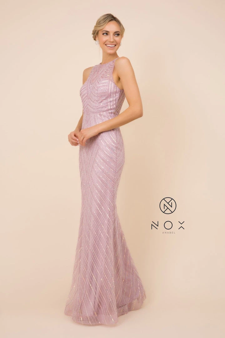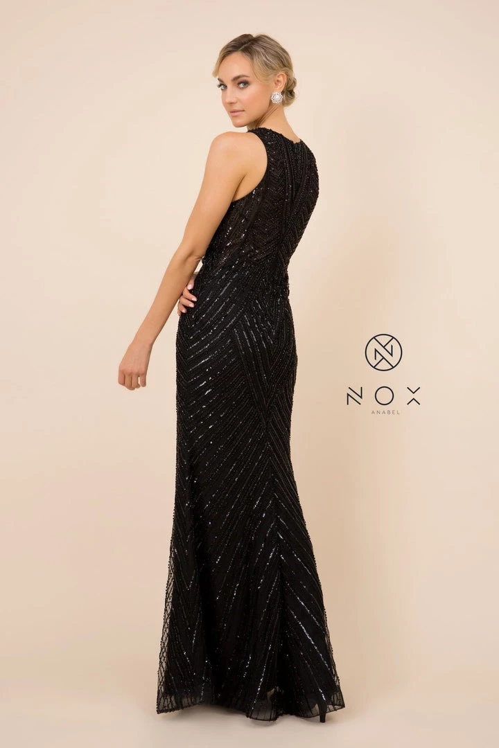 Light up the room in thisĀ long fitted sequin print sleeveless dress by Nox Anabel H404.