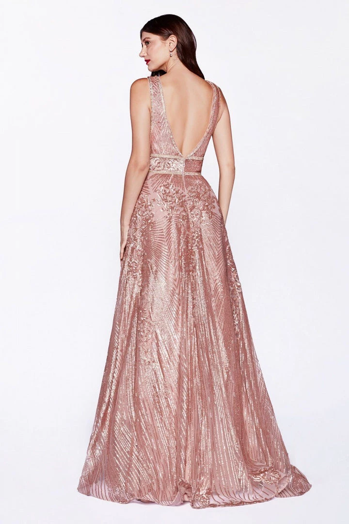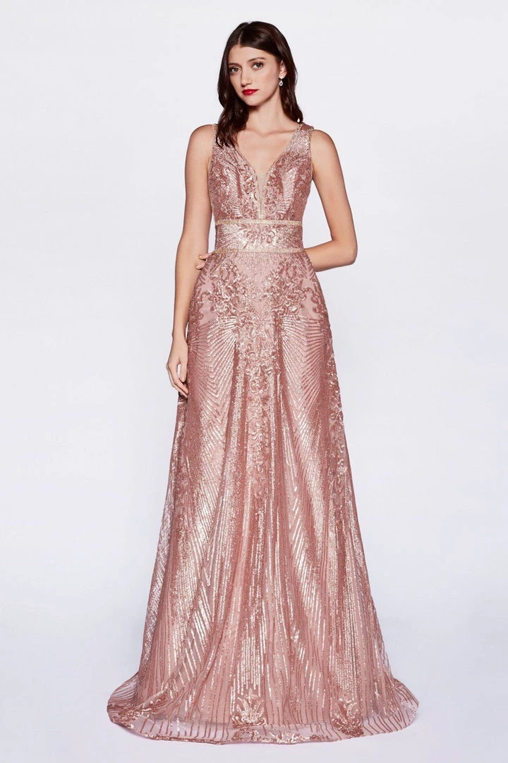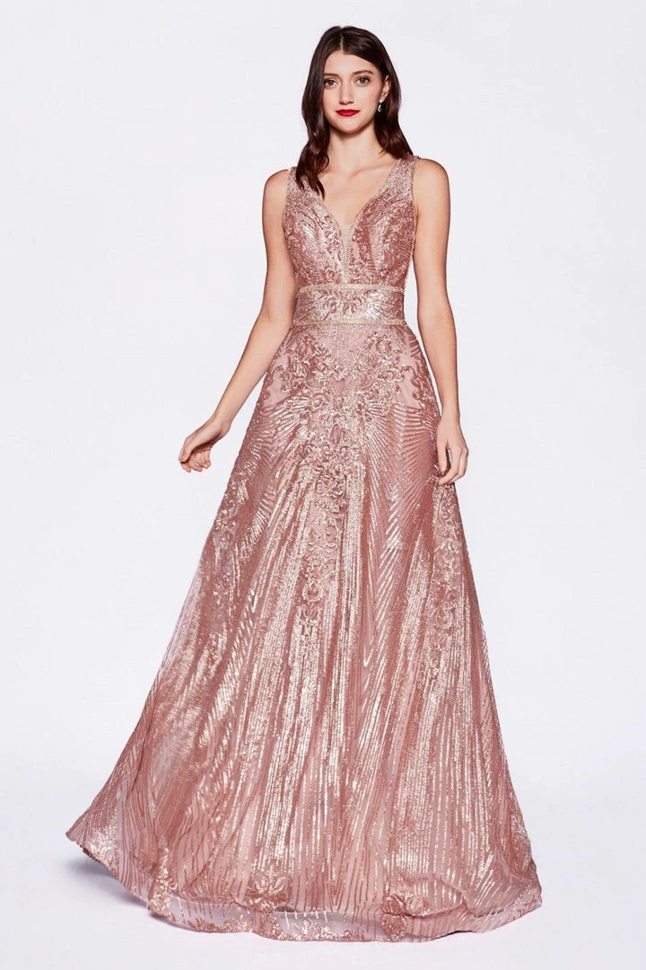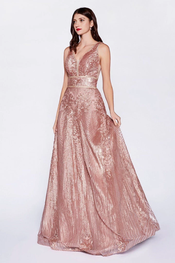 Sparkle under the stars in this sequin pattern long V-neck dress with A-line skirt by Cinderella Divine CD09.