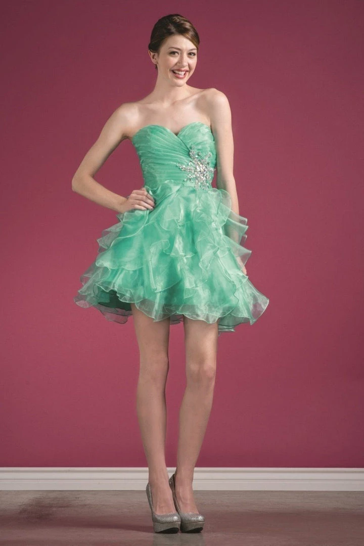 You’ll love twirling around in this strapless sweetheart cocktail dress with poofy ruffled skirt by Cinderella Divine JC822.