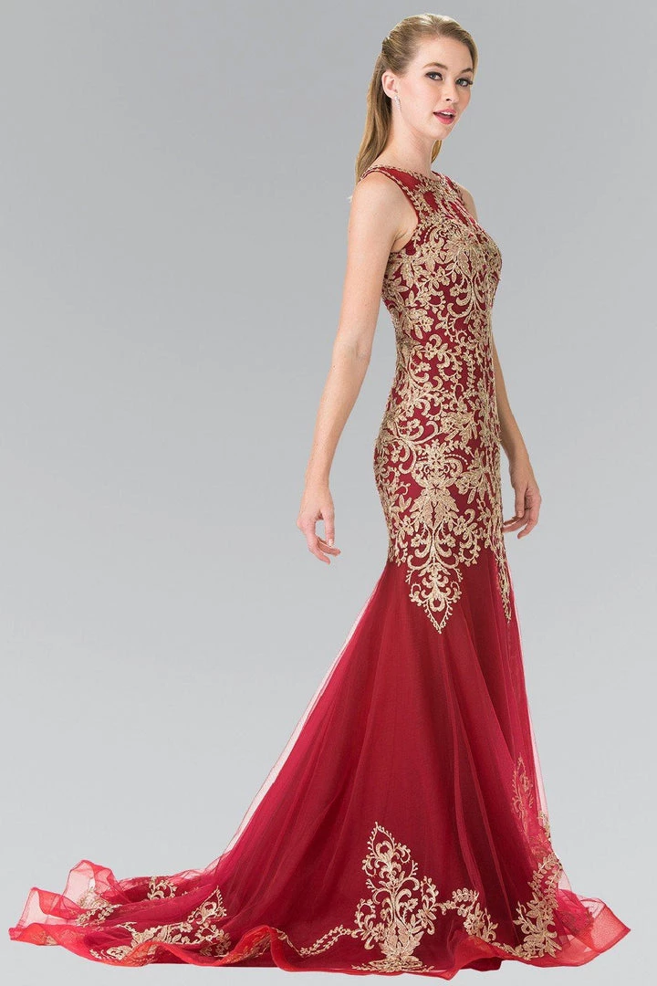Turn heads in this sleeveless embroidered tulle dress with small train by Elizabeth K.