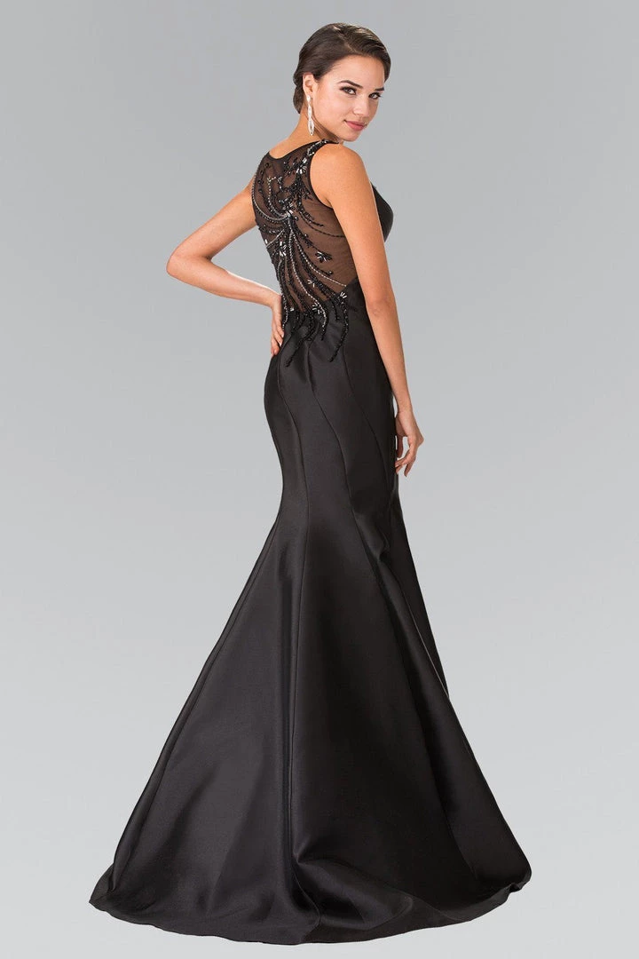 Look red carpet ready wearing this long sleeveless mermaid dress with sheer beaded back by Elizabeth K.