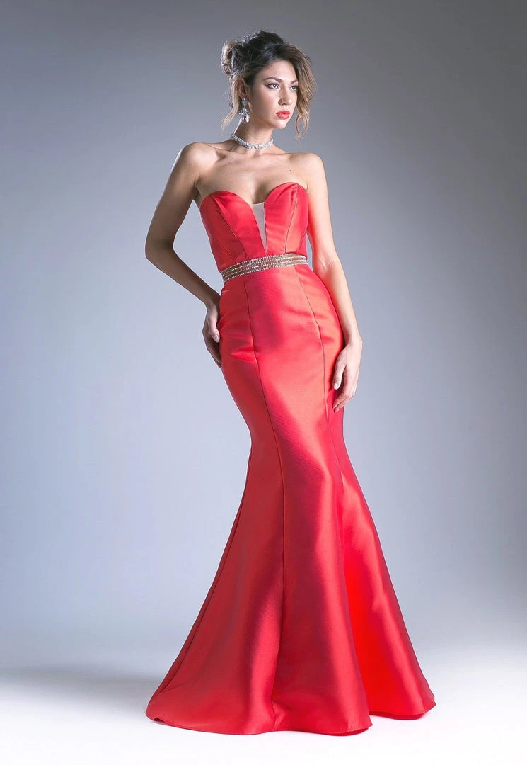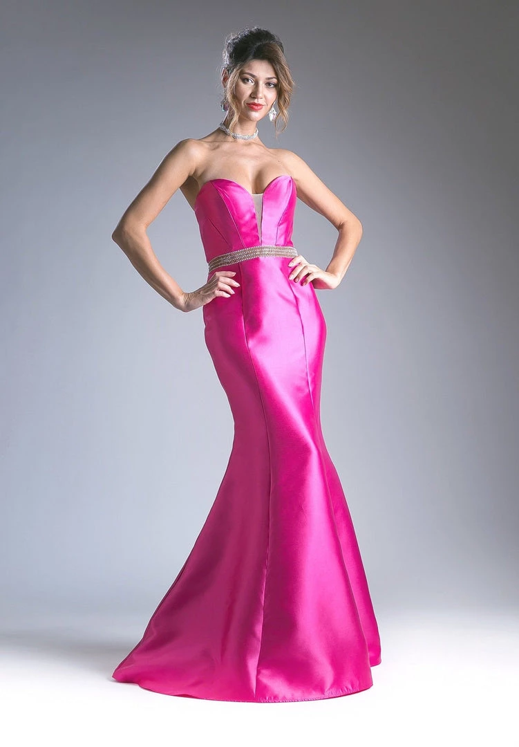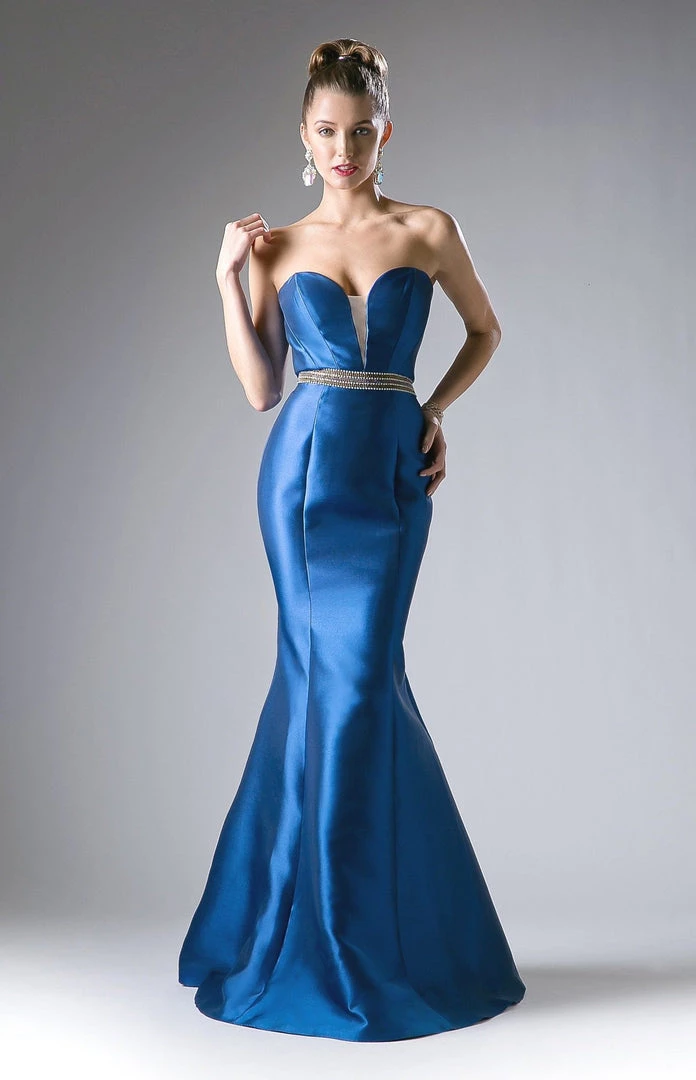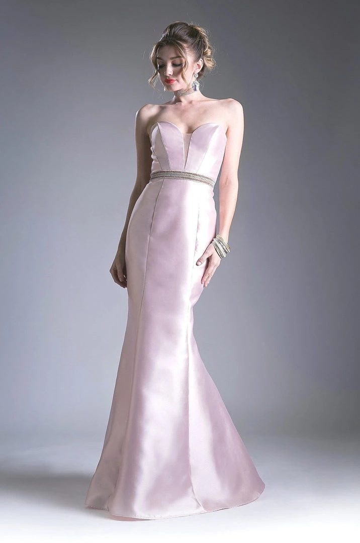 Look radiant in this strapless mermaid dress with beaded waist by Cinderella Divine ML400.