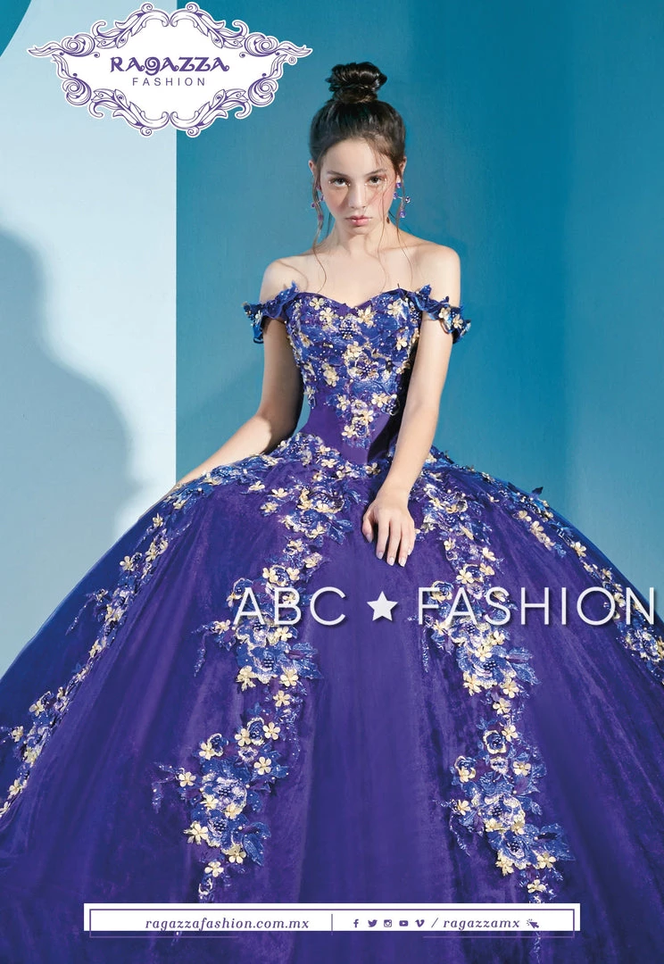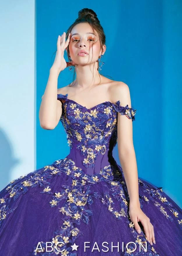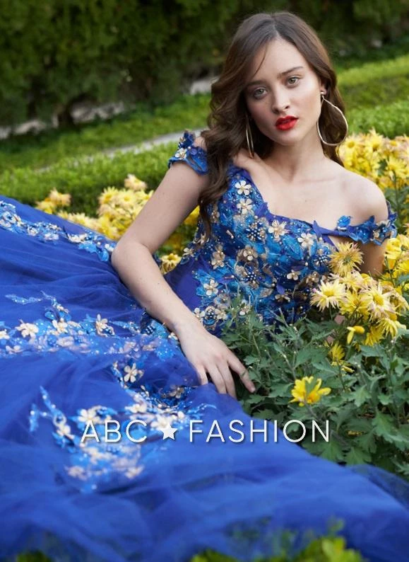 You’ll love twirling around in this floral applique off shoulder ball gown with A-line skirt by Ragazza Fashion D41-541. This beautiful long off shoulder dress features a semi-sweetheart bodice adorned with lovely 3D floral appliques and beads that gently cascade down to the waist, cap sleeves, the floor length A-line skirt is embellished with floral appliques, sweep train, open back, and a lace-up corset back. Único por sus detalles por bordados y aplicaciones 3D, combina perfecto con el increíble escote shoulder off.