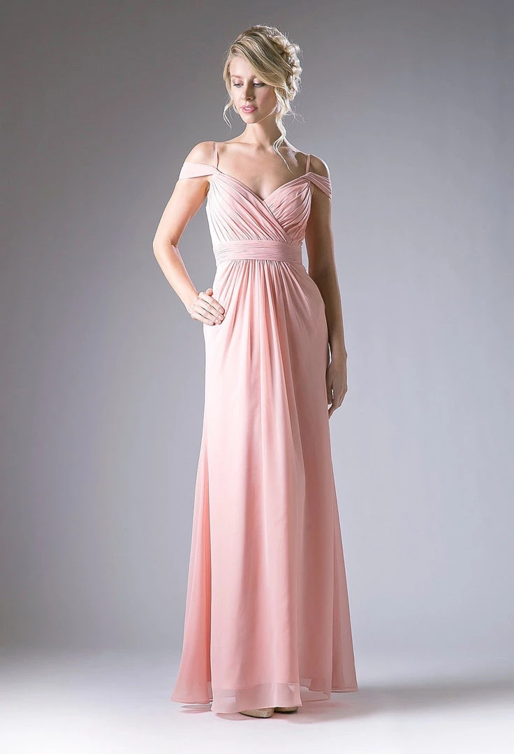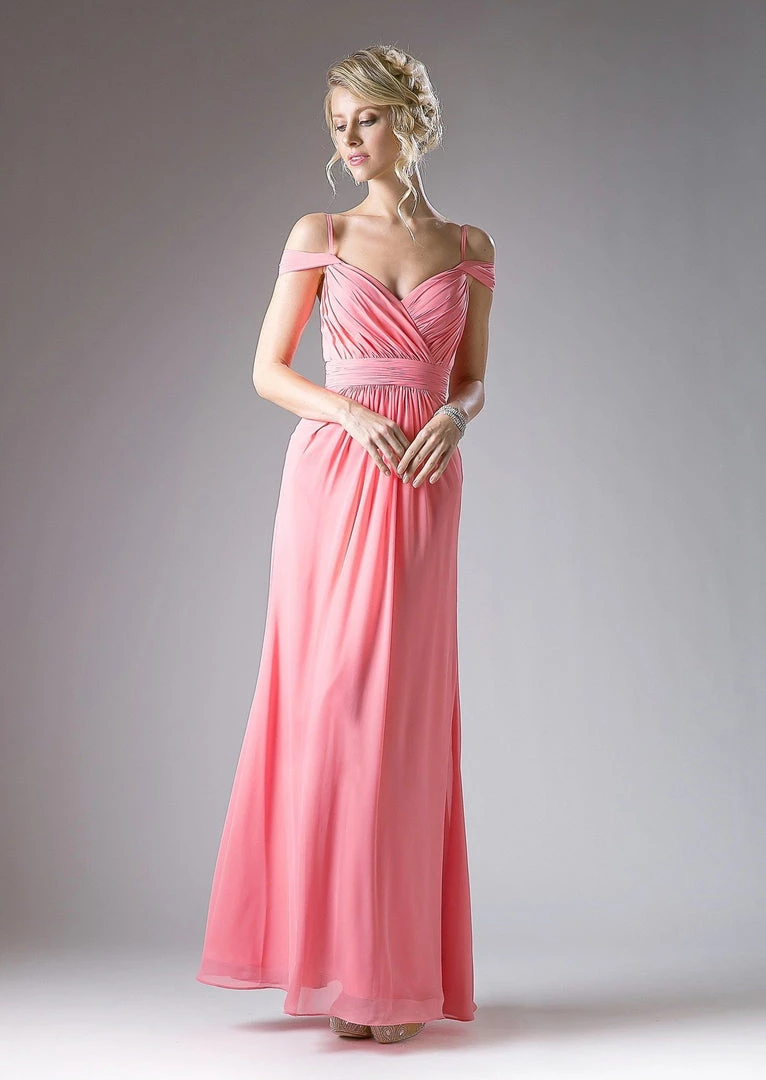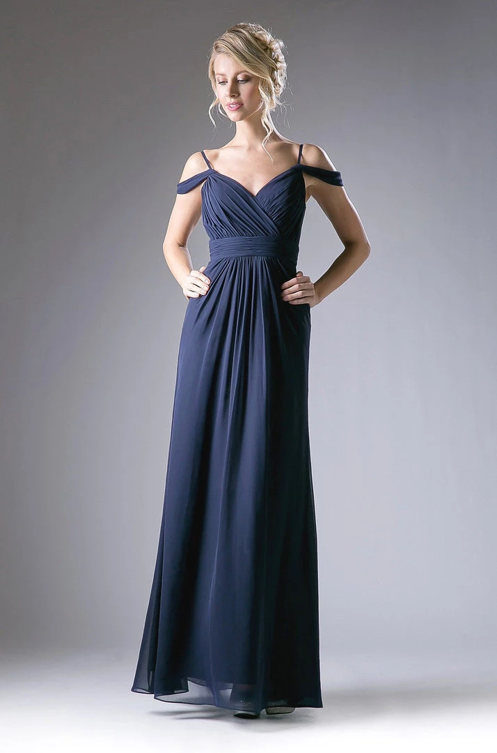 Turn heads in this long ruched cold shoulder dress with A-line skirt by Cinderella Divine CH527.