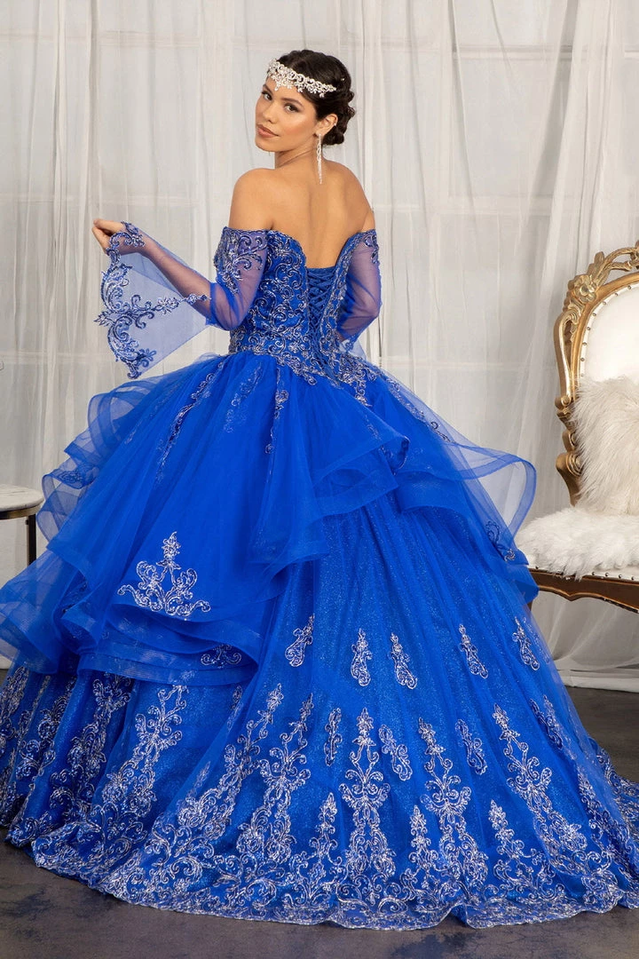 - Off Shoulder Sweetheart Quinceanera Dress with Long Sleeves