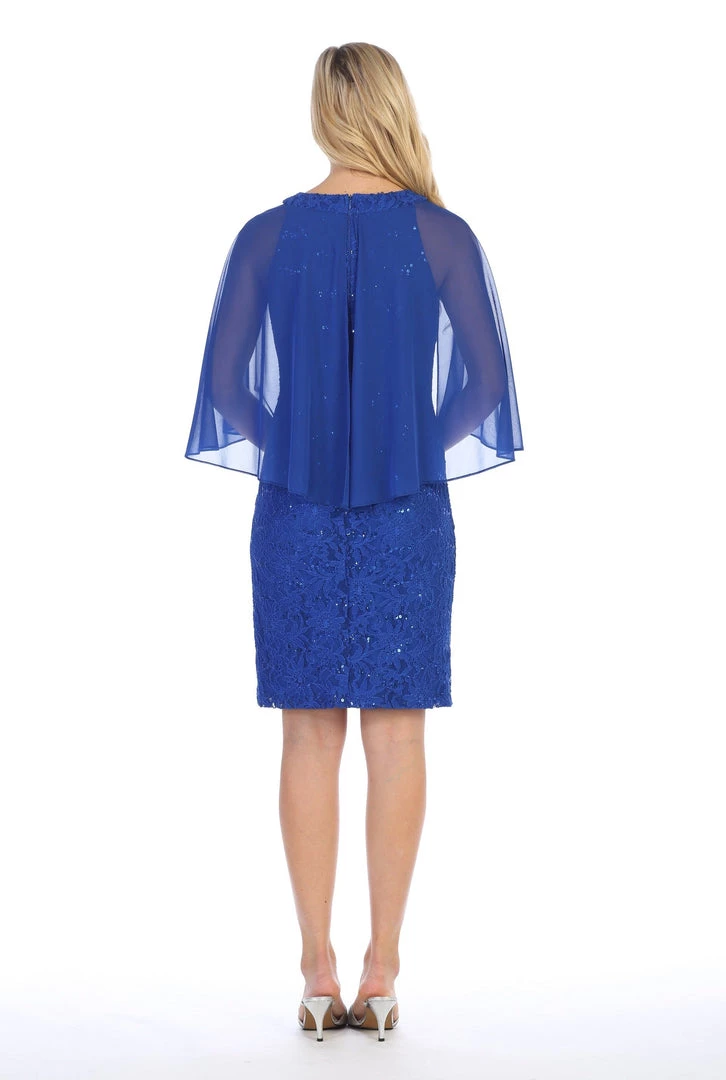 Receive lots of compliments in this sequined lace cocktail dress with cape flutter sleeves by Celavie 6352-S. This beautiful short dress features a high-neck neckline with keyhole cutout, dramatic cape that forms sheer flutter sleeves, short A-line lace skirt that falls just above the knees, and a zipper closure. Affordably priced under $100, this short party dress is perfect for any formal event and will keep you on budget!