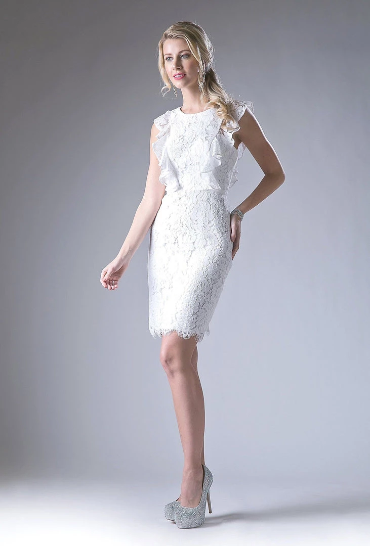 Turn heads in this lace cocktail dress with flutter sleeves by Cinderella Divine CH515.