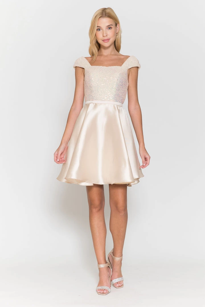 - Short Sequin Bodice Cap Sleeve Dress by Poly USA 8732