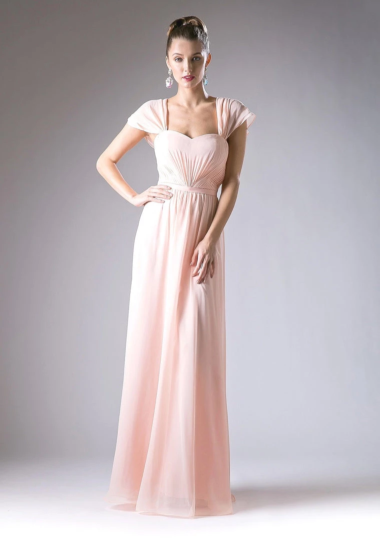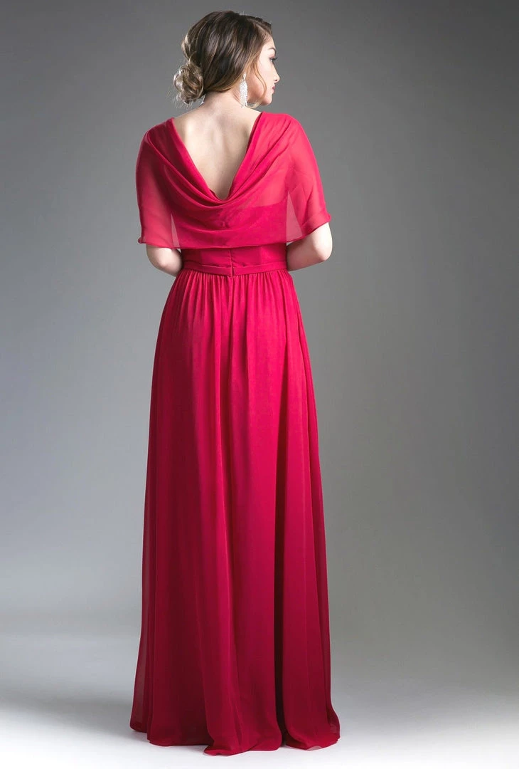 Look unforgettable in this long short sleeve chiffon dress with A-line skirt by Cinderella Divine CH532.