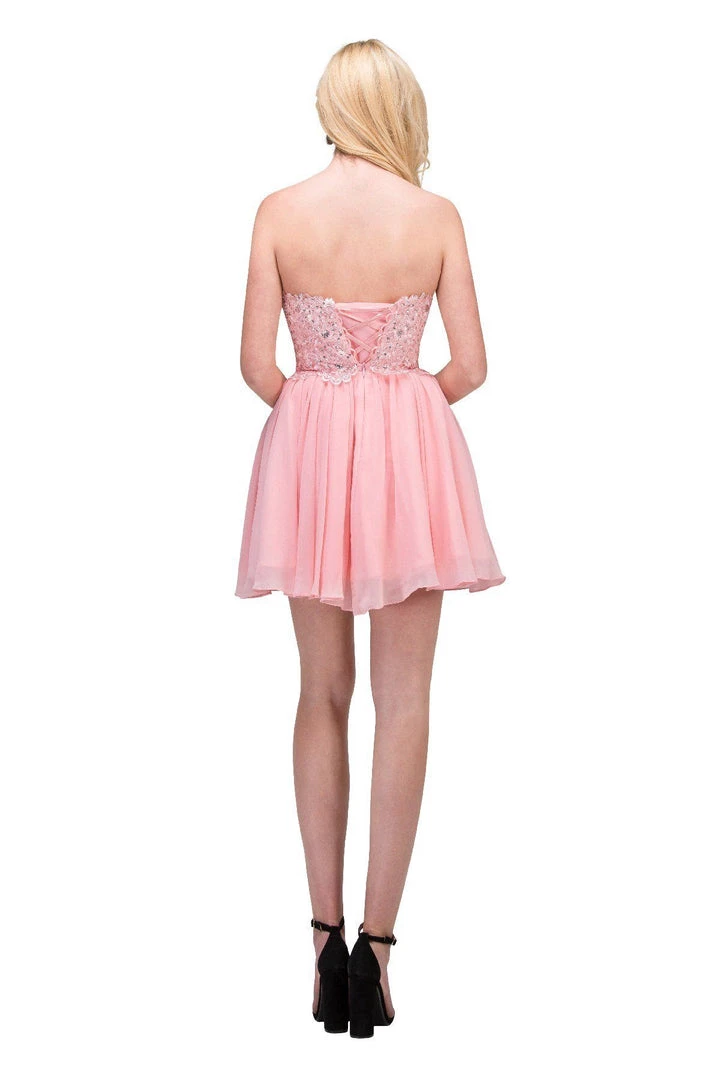 Dazzle the room in this beaded lace applique strapless sweetheart cocktail dress with corset back by Star Box 6063-1. This beautiful short dress features a strapless sweetheart lace appliqued bodice adorned with sparkly beads, short A-line skirt, and a lace-up corset back with zipper closure. Affordably priced under $130, this short party dress is perfect for any formal event and will keep you on budget!