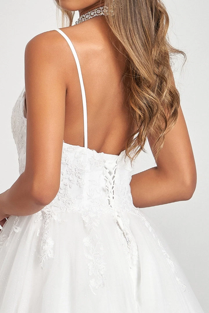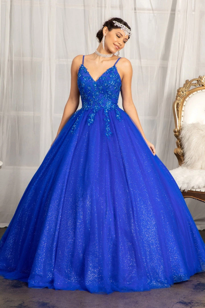Look breathtaking in this embroidered long sleeveless V-neck dress with A-line skirt by Elizabeth K GL1989. This beautiful ballgown features spaghetti straps with classic V-neckline. Beautiful embroidery and sparkly jewels are decorated on the bodice.