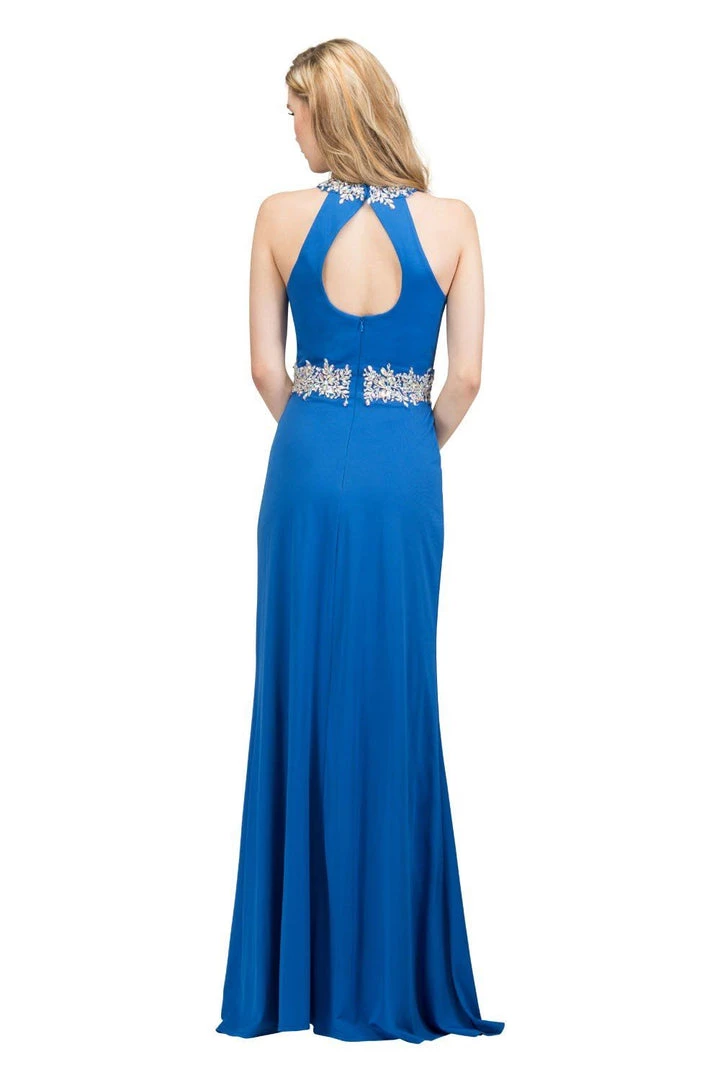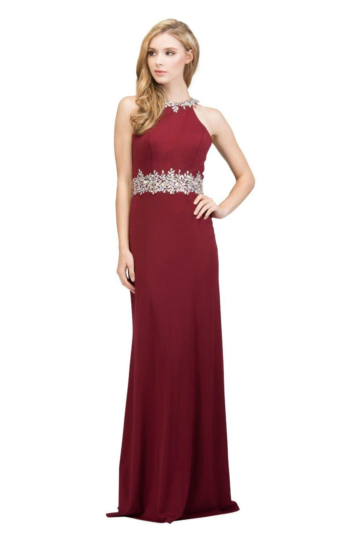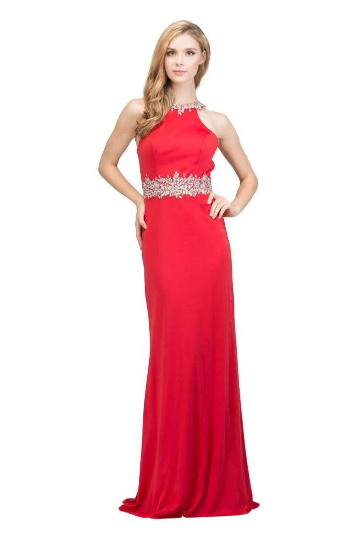 Exquisite sheathe evening gownĀ embellished with a beaded neckline and waist to flirt asĀ the music plays on into the night.