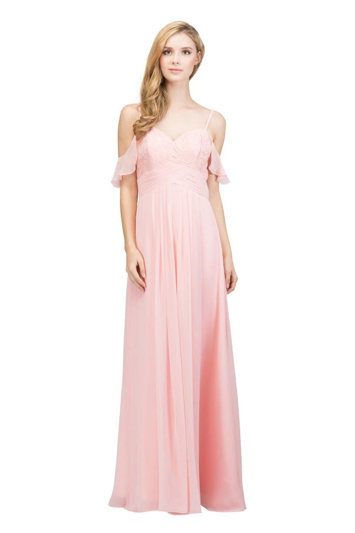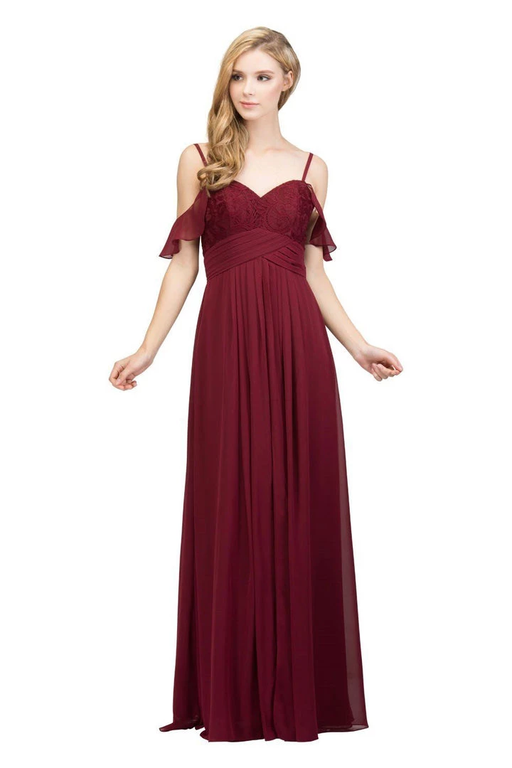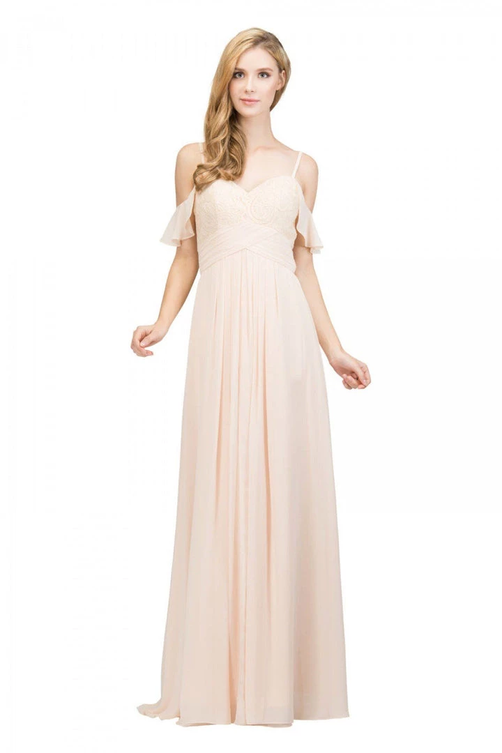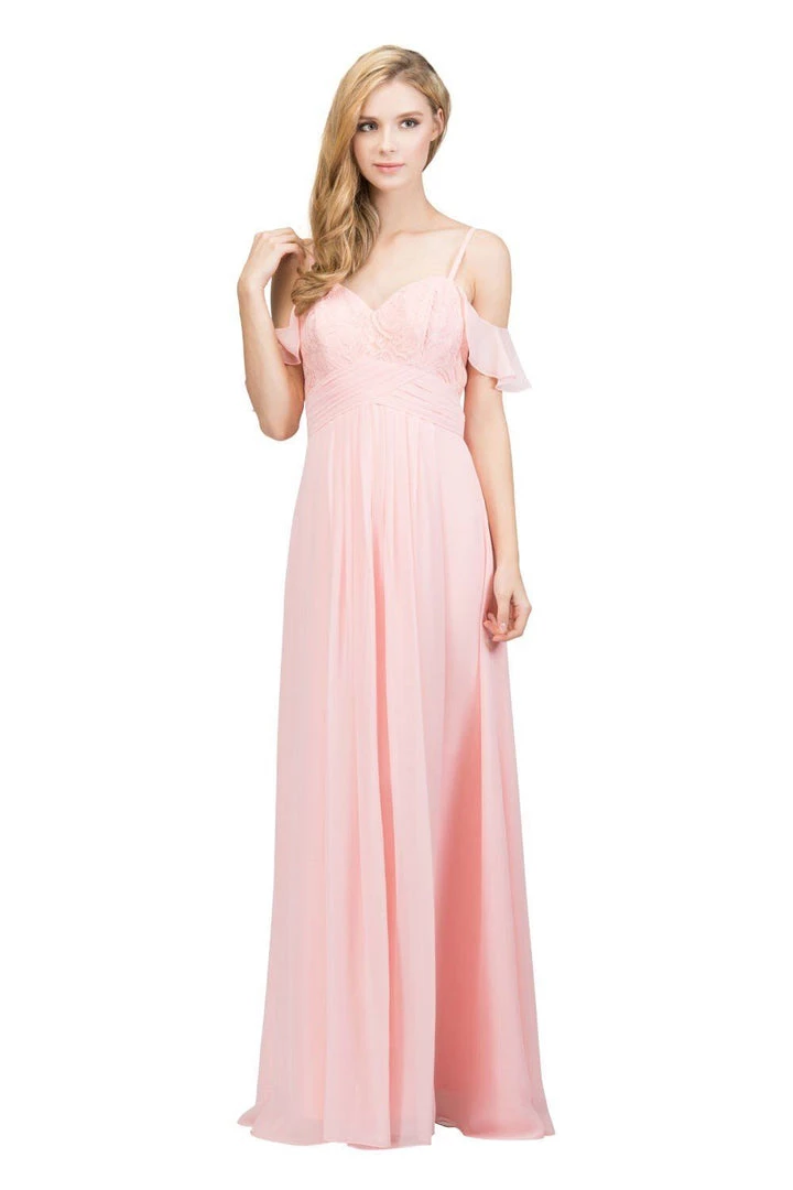 Classy chiffon floor-length-off-shoulderĀ ruffled in a spaghetti strapĀ bodice,Ā elegantly designedĀ to shimmerĀ under theĀ eveningās stars.