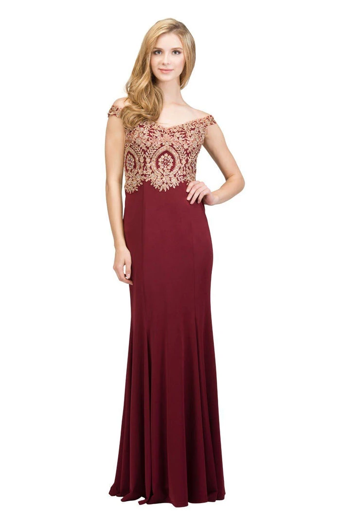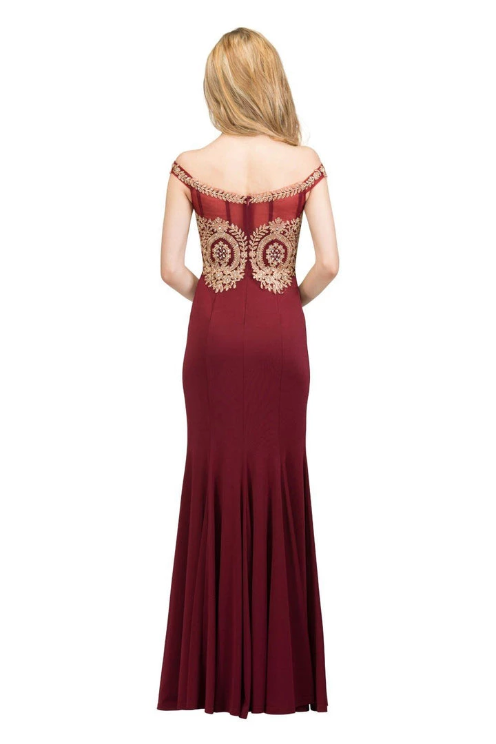Glamorous evening gown decorated with golden vines and sublime laced illusions.
