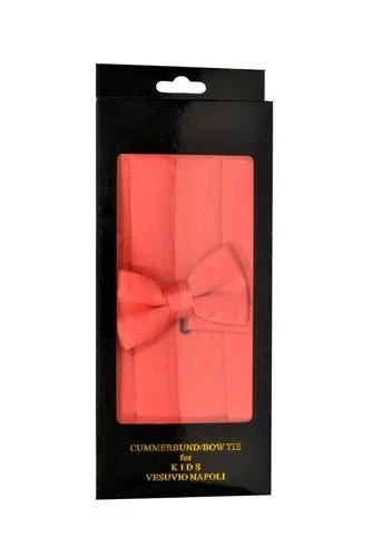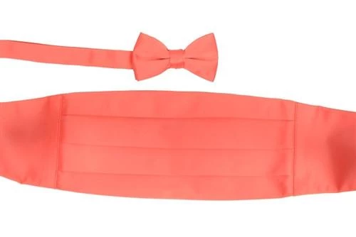 Add a special touch to any boy’s tuxedo or uniform with this coral cummerbund and pre-tied bow tie set. Cummerbund measures 14.5 inch width by 4.5 inch height. Bow tie measures 4 inch width by 1.5 inch height. This coral cummerbund will accentuate his tuxedo and is great for any formal event.