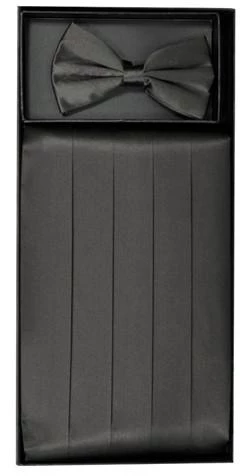 Add a special touch to your tuxedo or uniform with this charcoal cummerbund and pre-tied bow tie set. This charcoal cummerbund will accentuate your tuxedo and is great for any formal event.