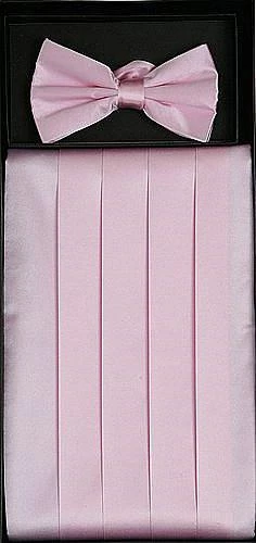 Add a special touch to your tuxedo or uniform with this pink cummerbund and pre-tied bow tie set. This pink cummerbund will accentuate your tuxedo and is great for any formal event.